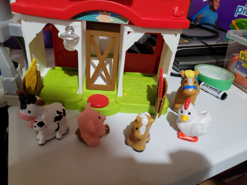 Selling a Fisher-Price Little People Animal Farm playset! This set comes with a barn and several animal figures, including a cow, pig, horse, and chicken. Perfect for toddlers and young children who love farm animals and imaginative play