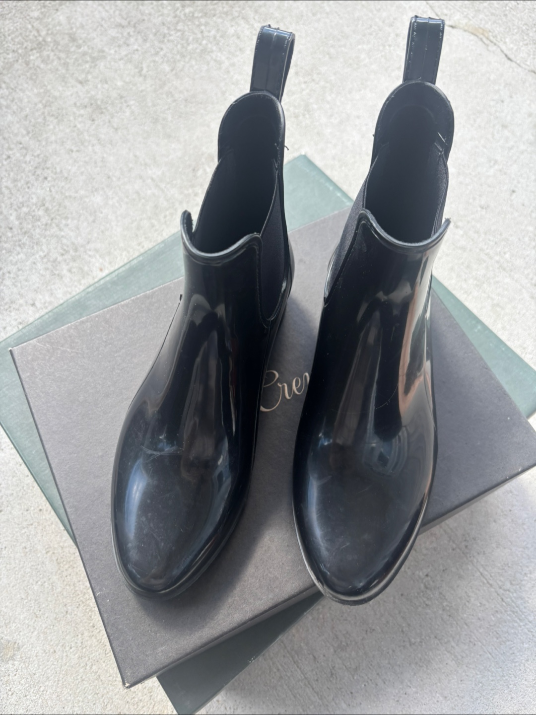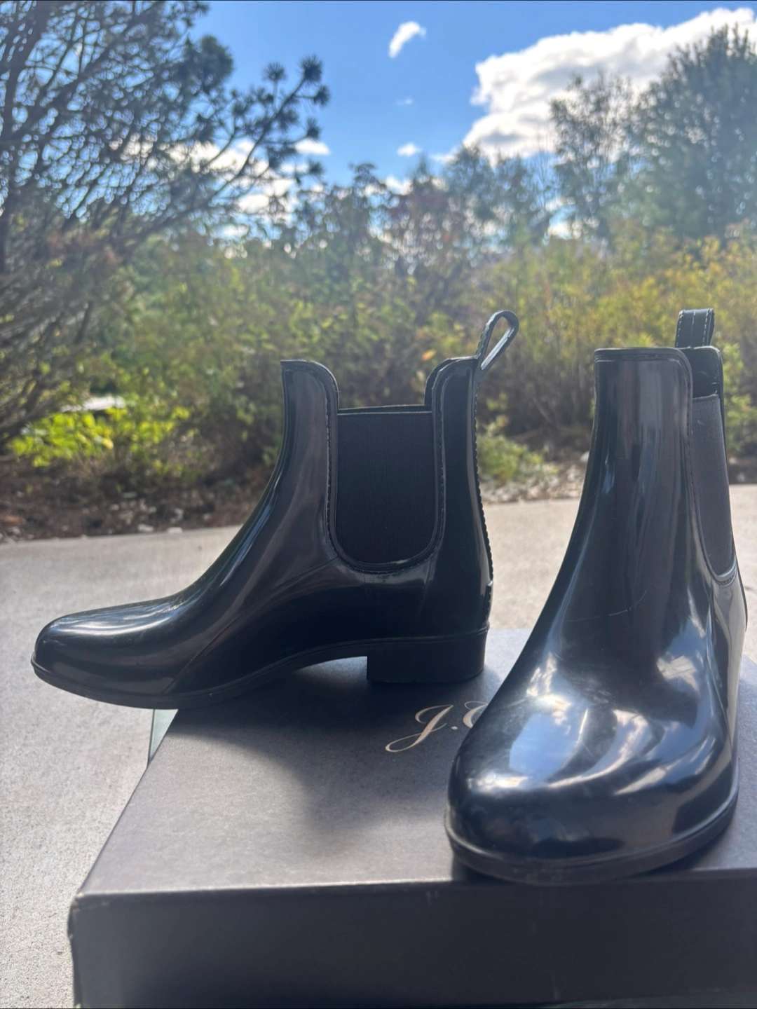 J.Crew black ankle rain boots in size 6. These boots are perfect for rainy days and are in great condition. The box is included if you want . Only worn twice.