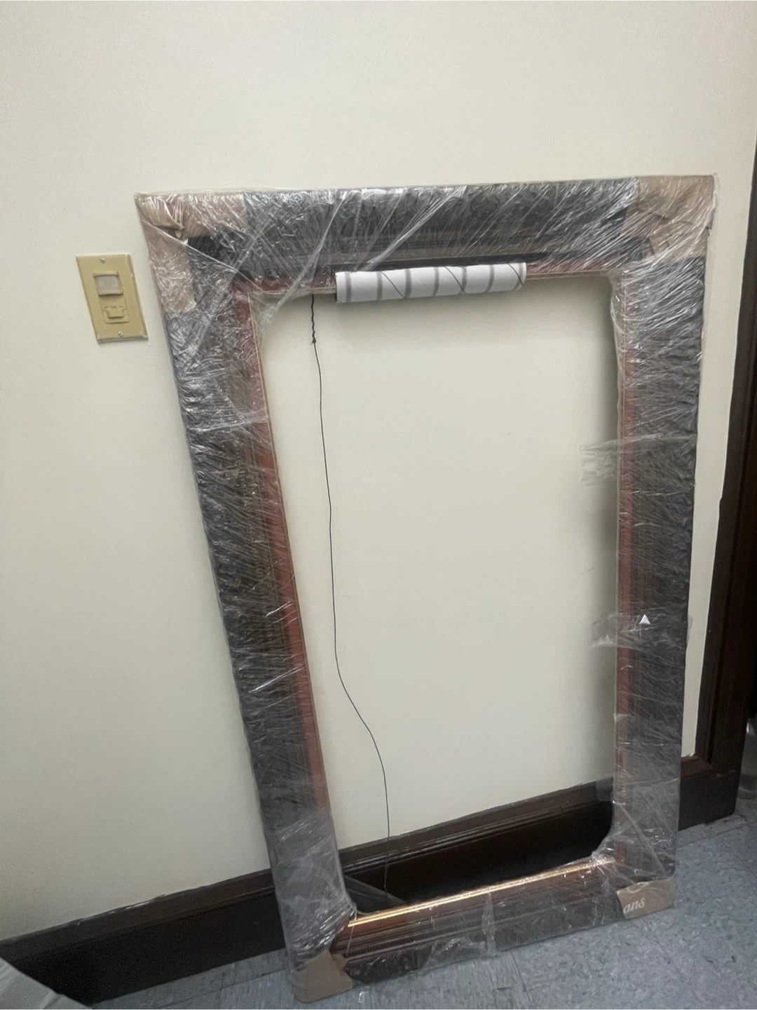 Selling a beautiful, ornate wooden picture frame. It has a lovely, detailed design and is wrapped in plastic for protection. It looks to be in great condition and ready to display your favorite memories!