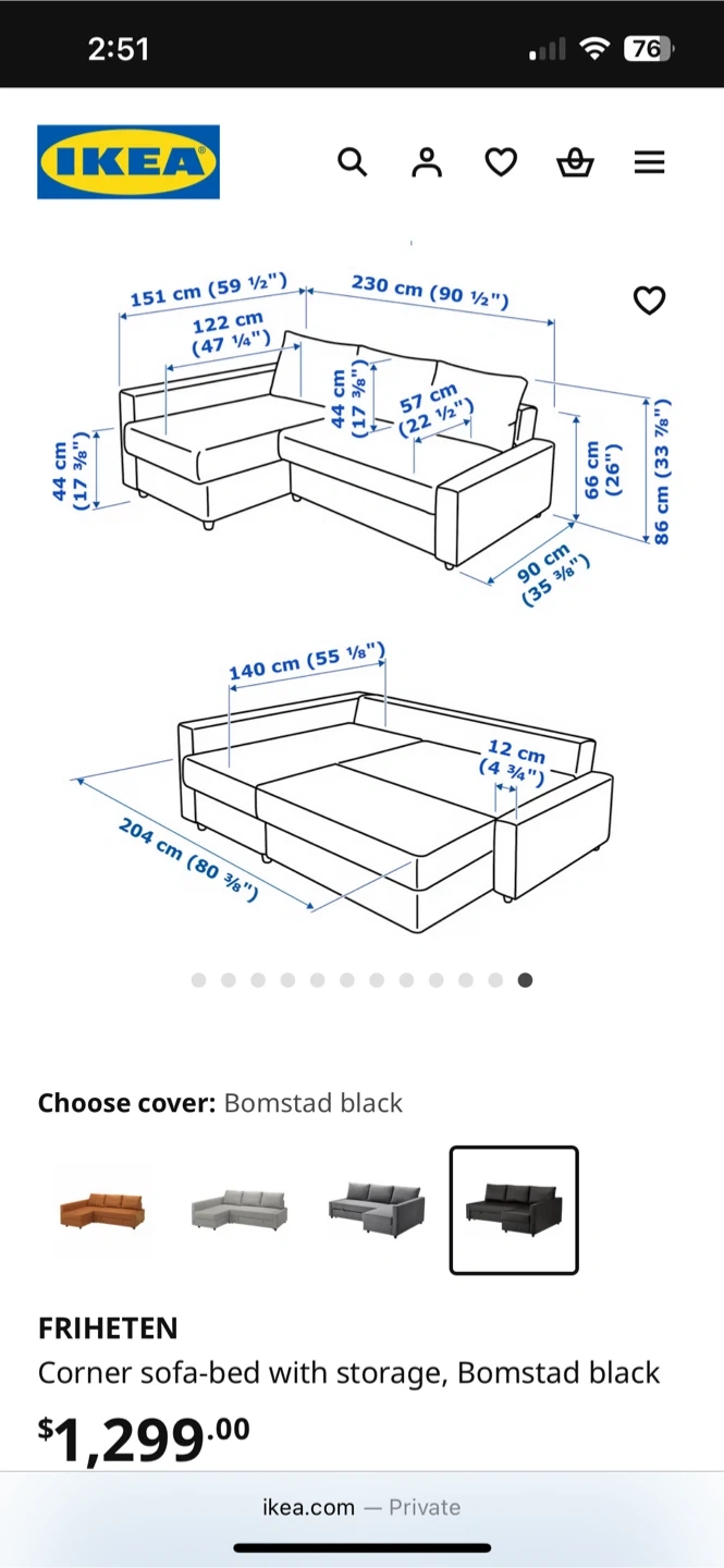 IKEA FRIHETEN Leather Corner sofa-bed with storage