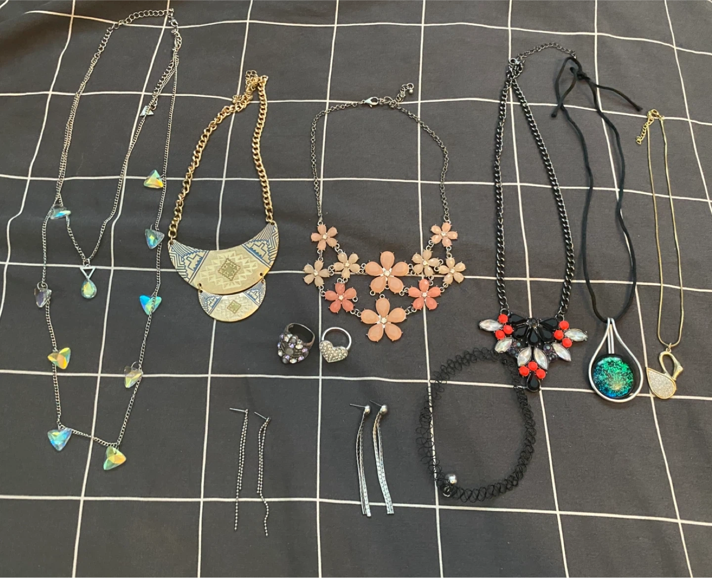 Selling a collection of necklaces, rings and earrings. There's a variety of styles, from delicate chains to statement pieces. Perfect for adding a little sparkle to your outfits!