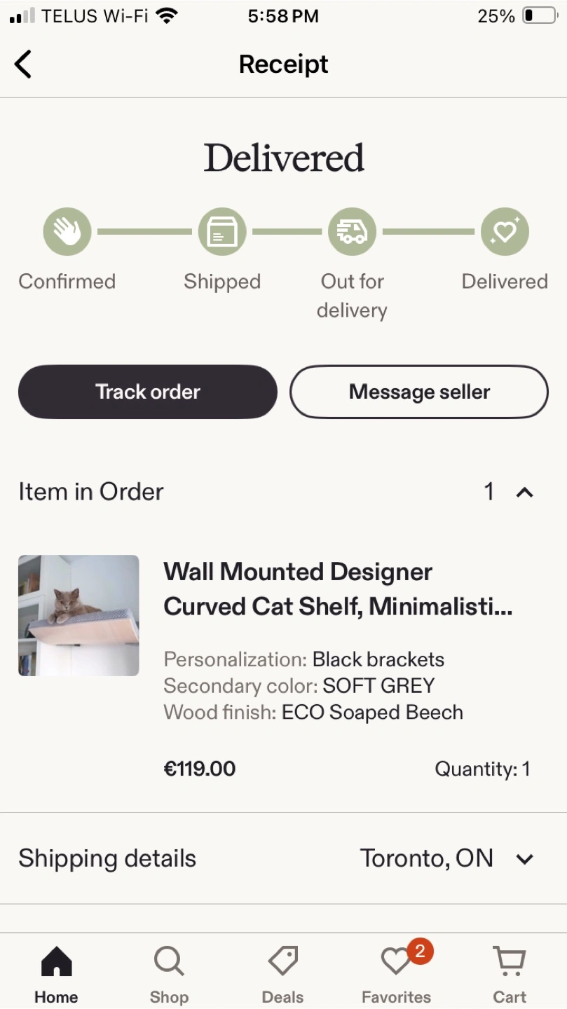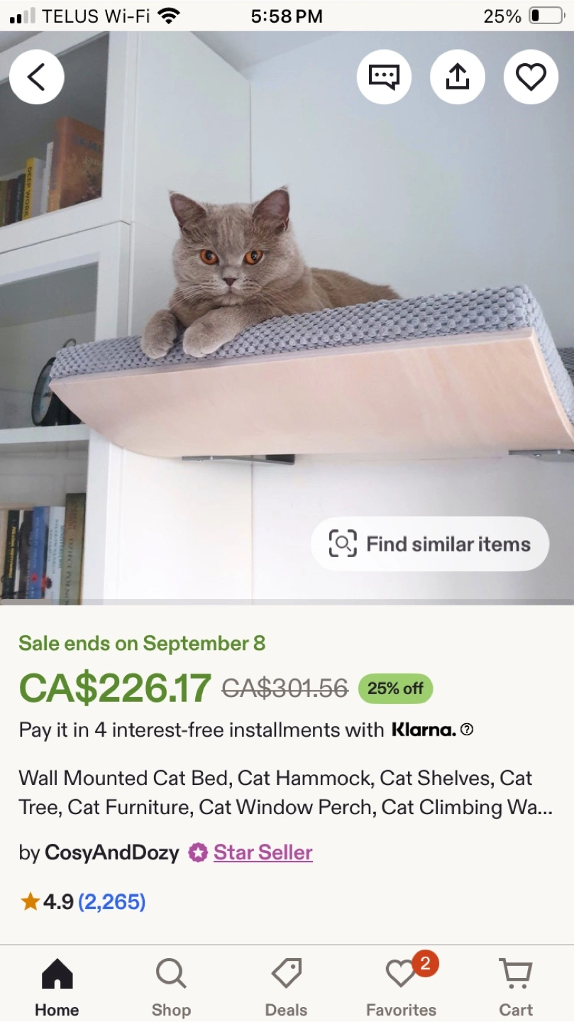 Selling a wall-mounted cat shelf from CosyAndDozy! It's a designer curved shelf with a minimalist style.