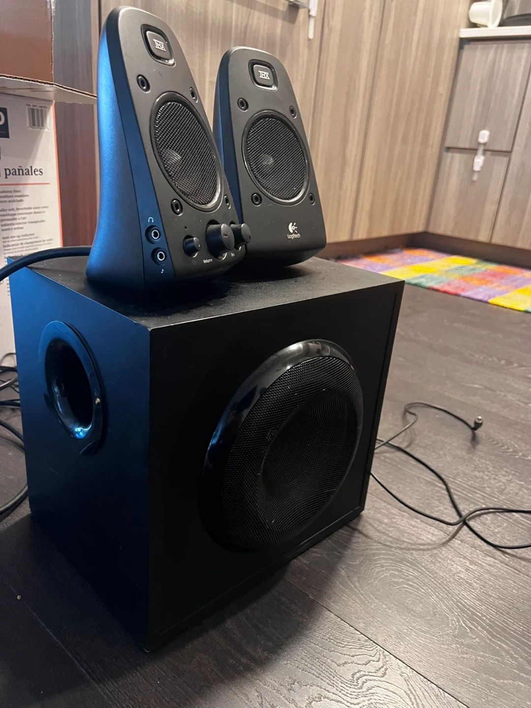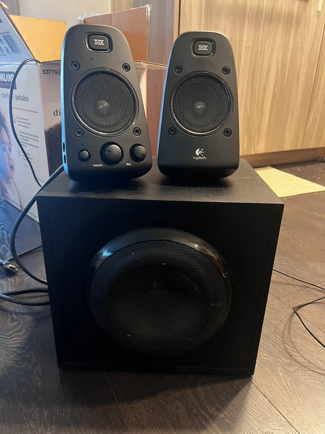 Selling a Logitech Z-623 THX-certified 2.1 speaker system, including two satellite speakers and a subwoofer. This system delivers great sound quality for music, movies, and games. Perfect for your home entertainment setup!