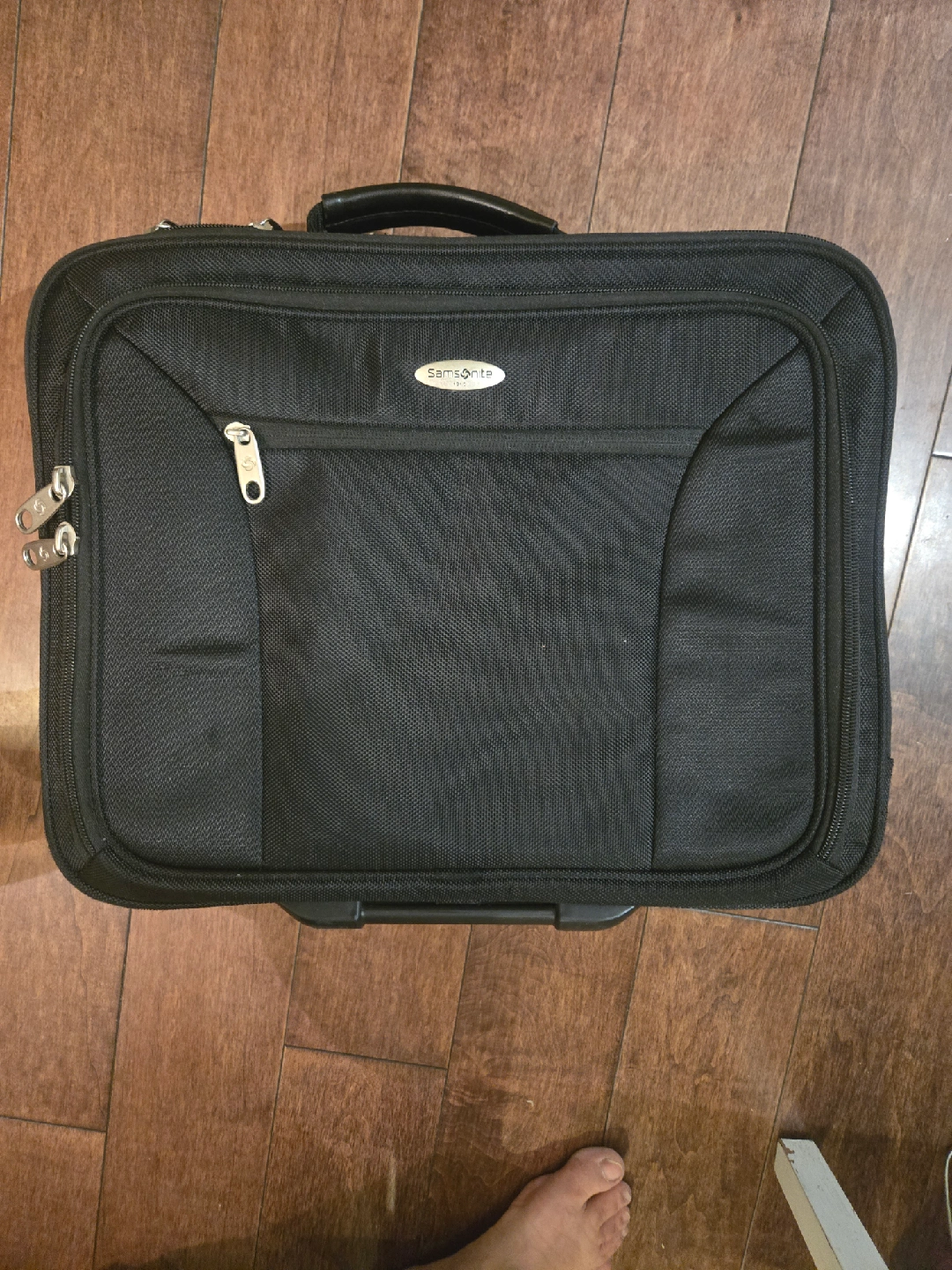 Selling a black Samsonite rolling carry-on suitcase. It's in great shape and ready for your next trip! Features a retractable handle and smooth-rolling wheels for easy navigation. Perfect for weekend getaways or business travel
