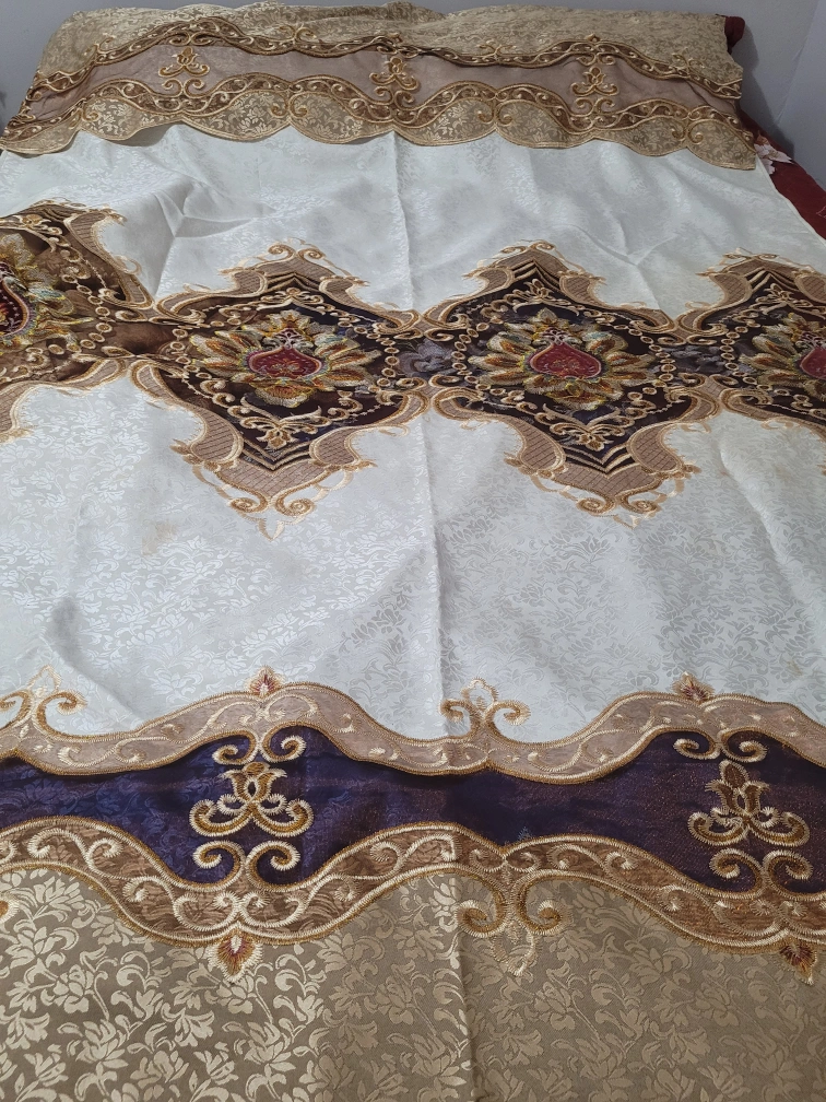 Selling a beautiful embroidered decorative curtain. It features intricate floral patterns and elegant detailing. The curtain is in good condition and would add a touch of sophistication to any room. It's a lovely piece to enhance your home decor!