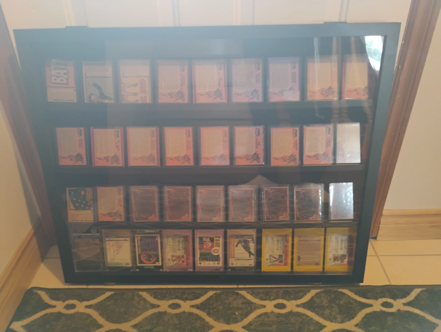Can fit approximately 9 cards in standard toploaders per row (shown in top 3 rows)