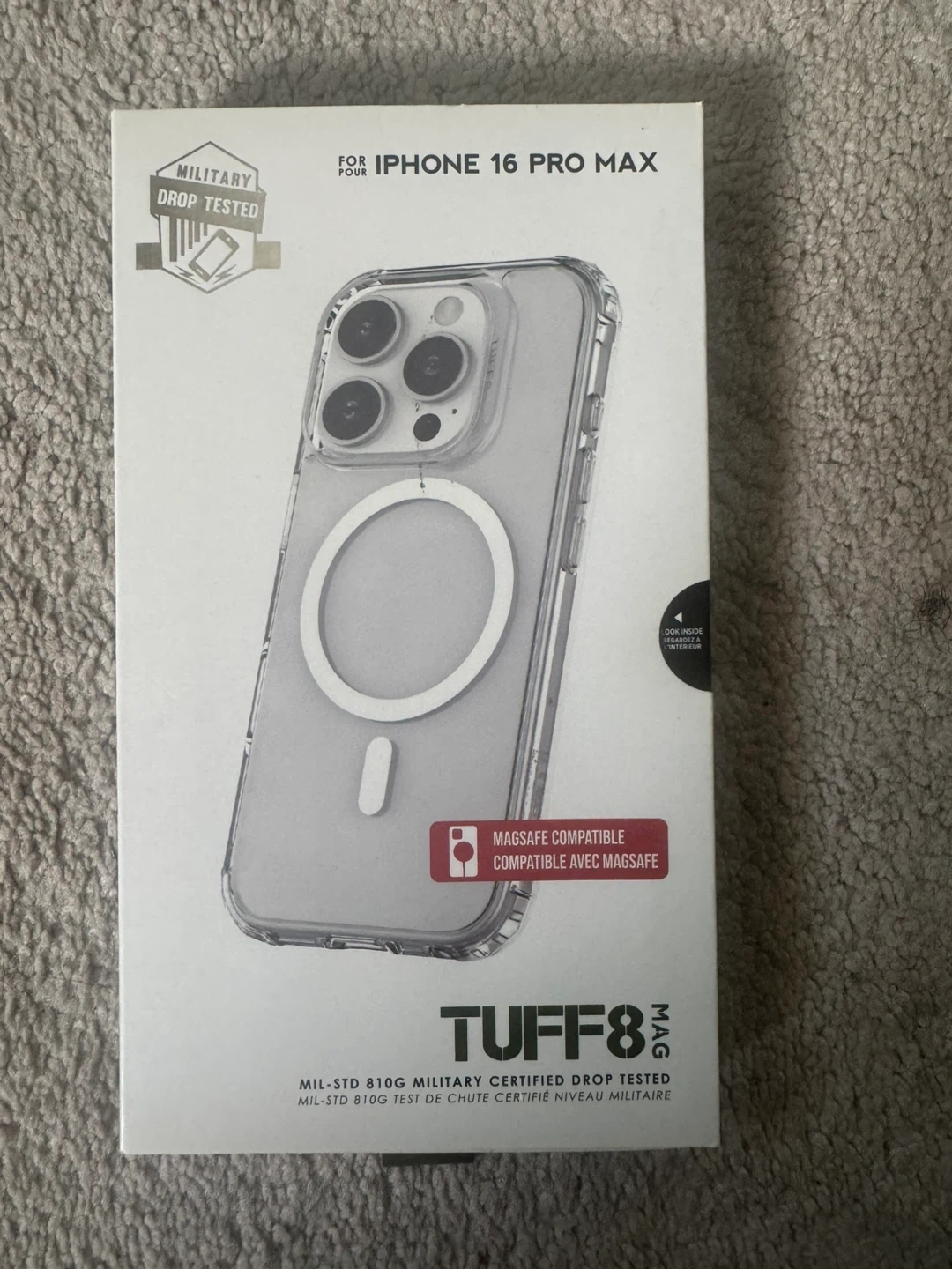 Selling a brand new Tuff8 Mag clear case for the iPhone 16 Pro Max! It's still in the box and has never been used.
