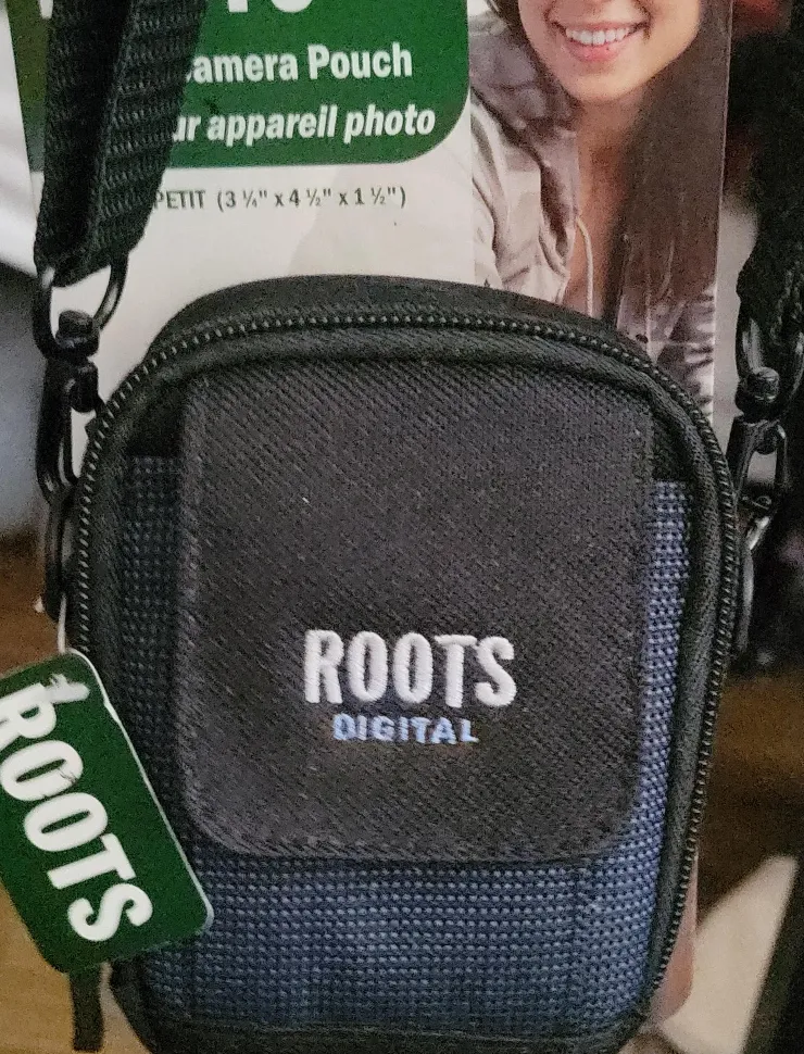 Selling a Roots Digital camera pouch. It's a small size, perfect for smaller cameras or accessories. The dimensions are 3½" x 4½" x 1½".