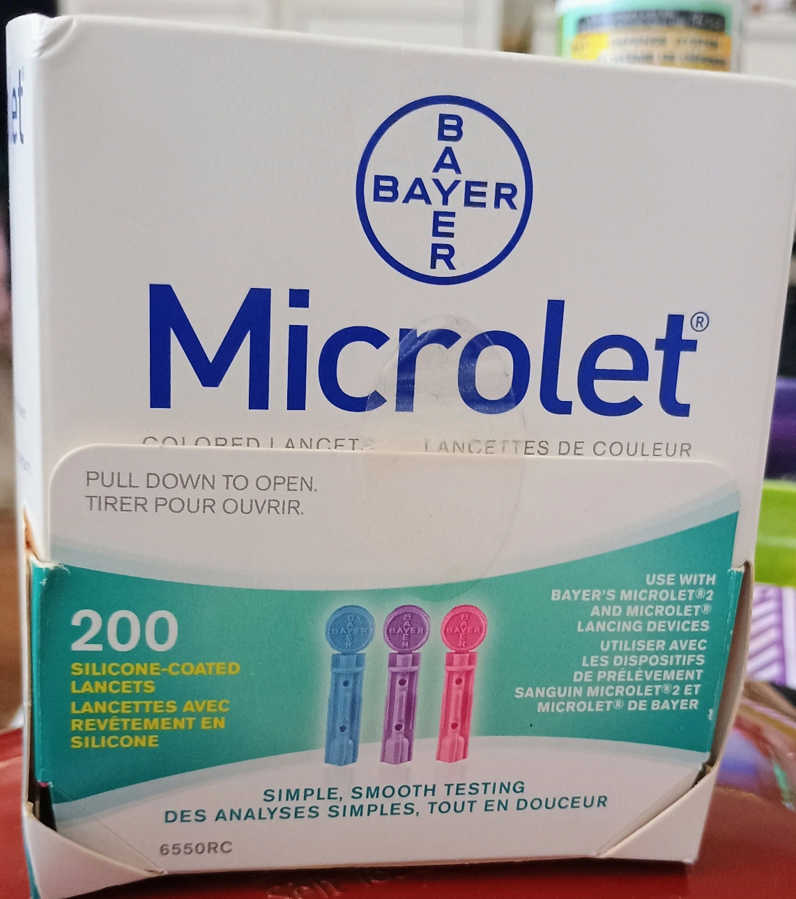 I have a box of Bayer Microlet lancets. The box contains 200 silicone-coated lancets for simple, smooth testing. They are designed for use with Bayer's Microlet 2 and Microlet lancing devices.