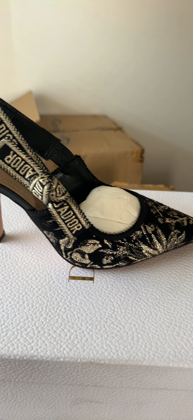 Selling a beautiful pair of Dior J'Adior slingback pumps in black and gold. These are in excellent condition and come with the original box. The iconic 'J'ADIOR' ribbon adds a touch of elegance to any outfit!