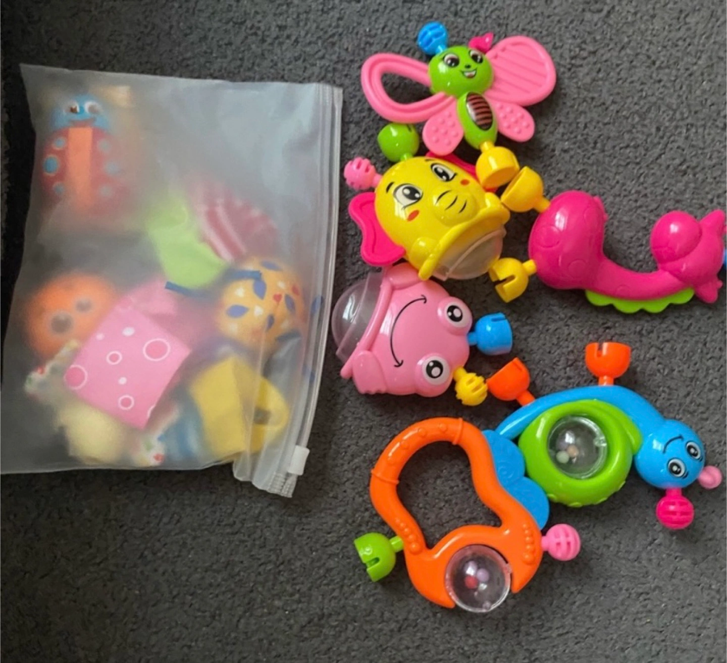 Selling a set of baby rattle toys. They're in good condition and ready for a new home! Set of 10