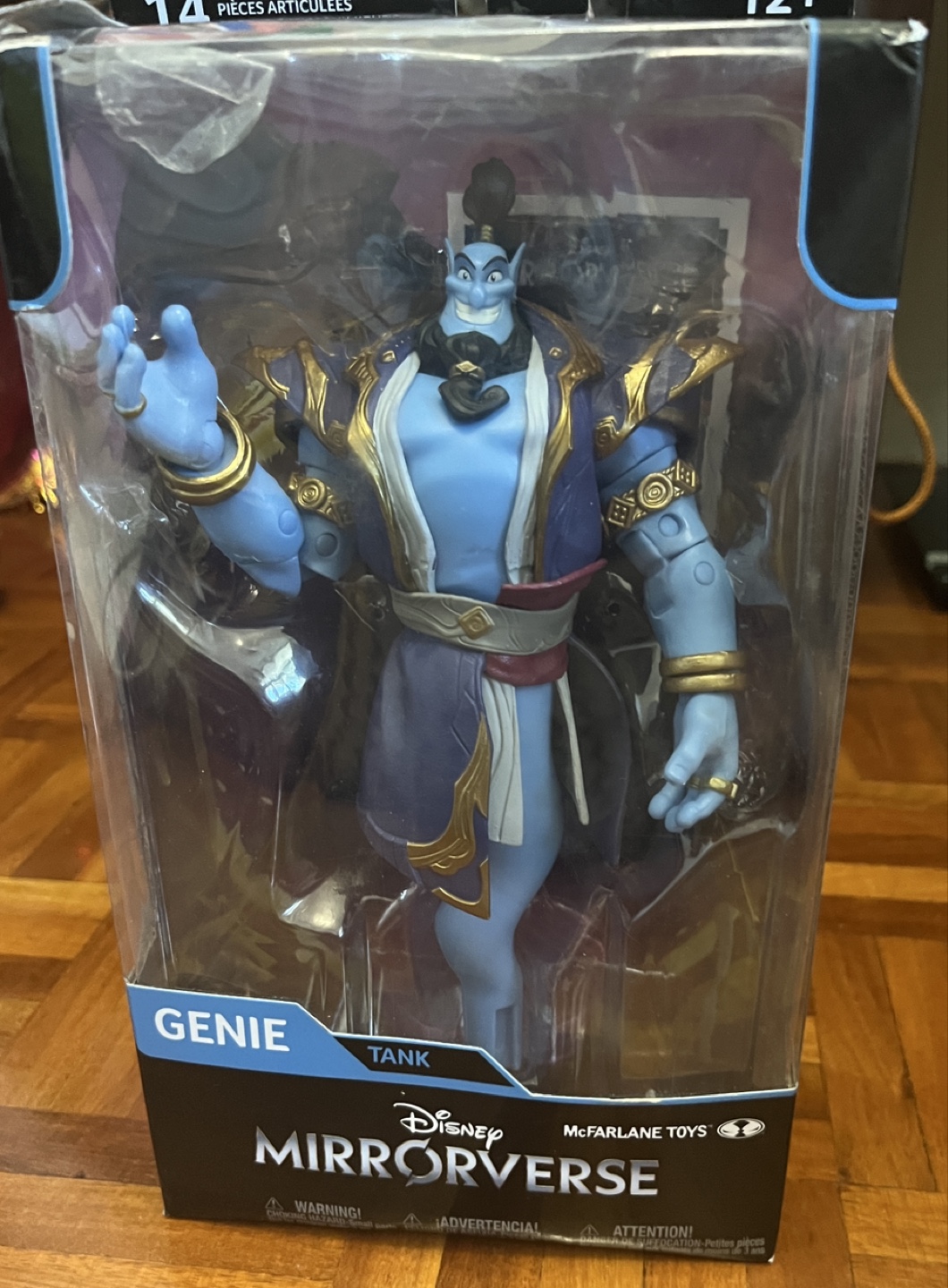 Selling a Disney Mirrorverse Genie Tank action figure by McFarlane Toys! It's still in its original packaging and ready for a new home. This figure has 14 moving parts, making it super posable and fun to display. Perfect for Disney or action figure collectors!