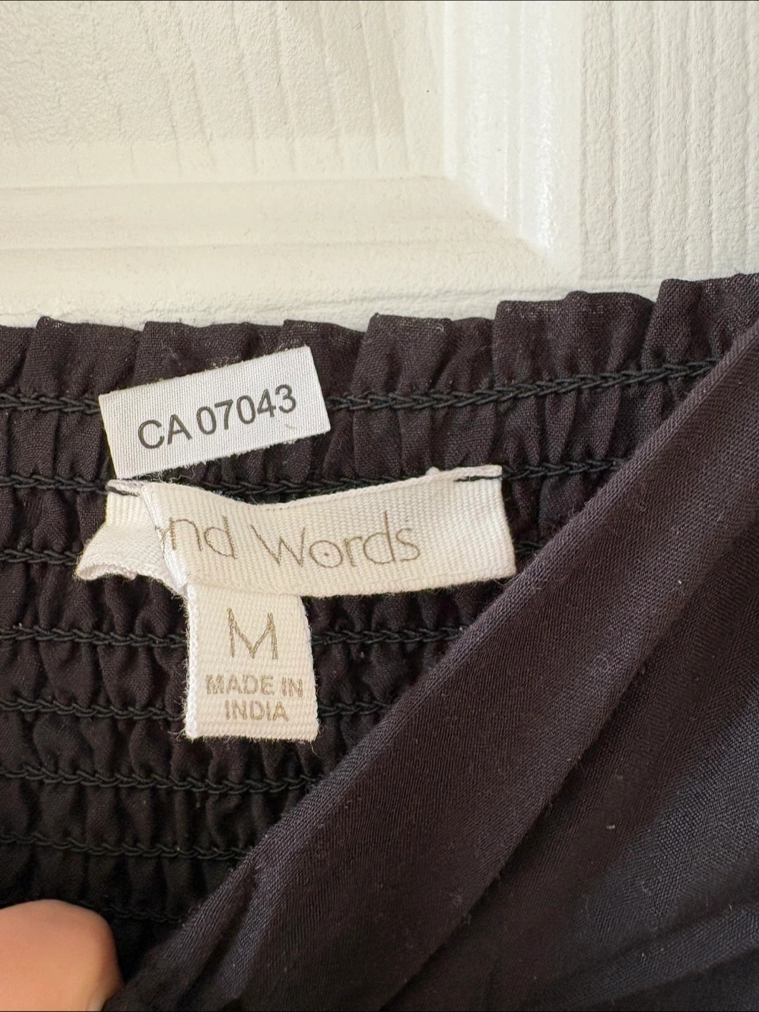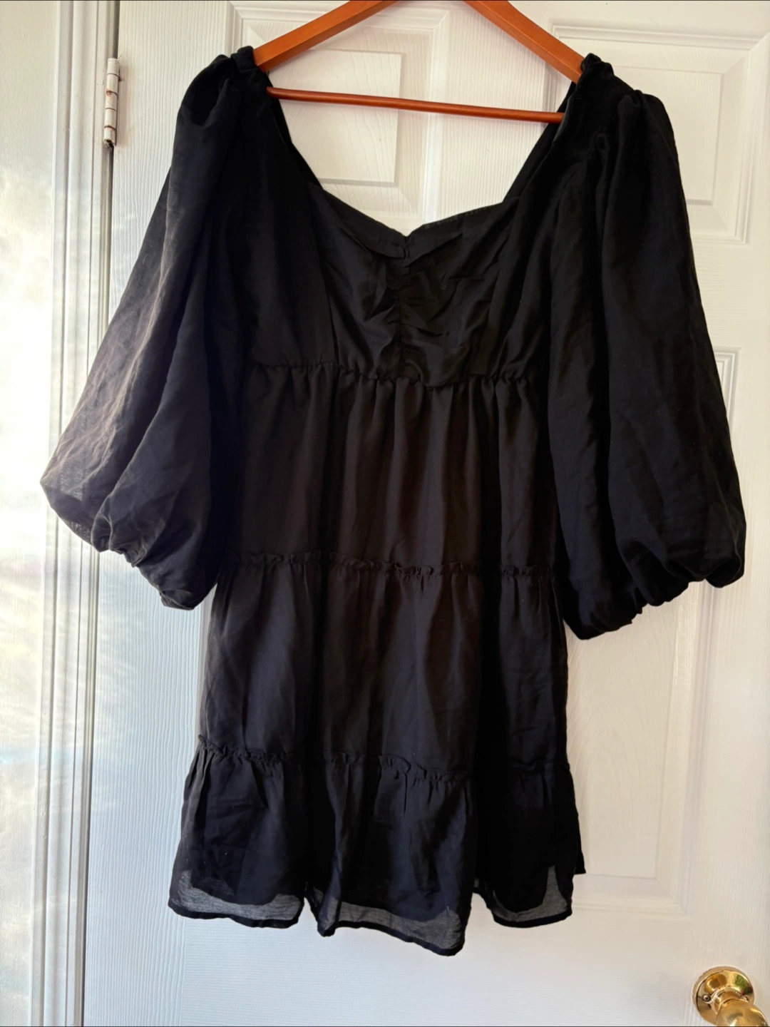Selling a cute black dress from Second Words! It's a size medium and made of 100% polyester. Perfect for a casual outing or dressing up for a night out!