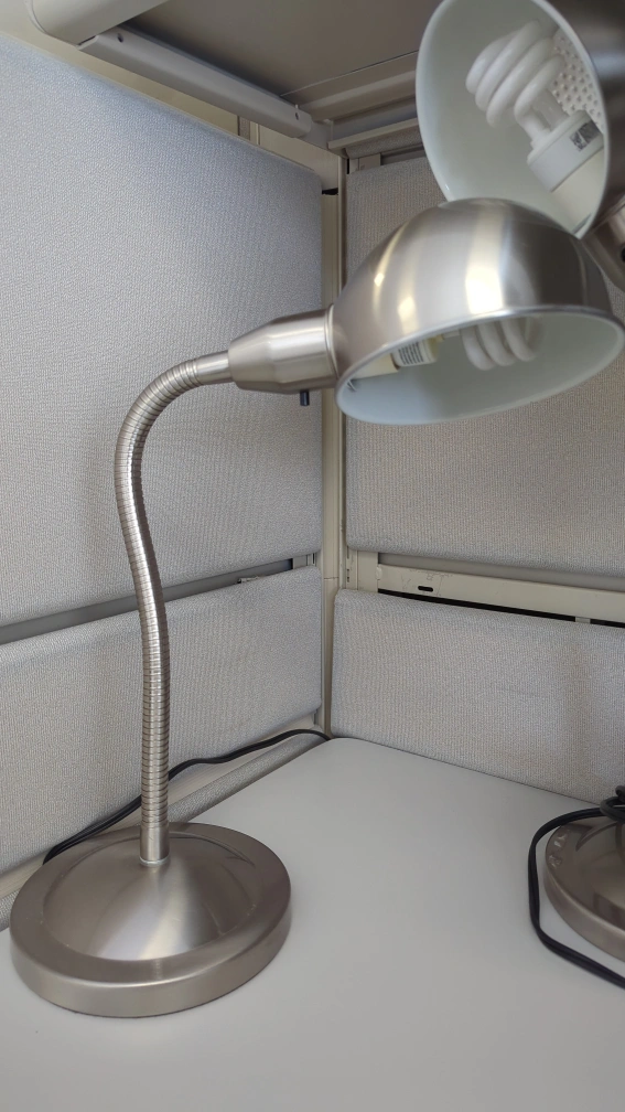 Selling a handy silver desk lamp! It's in perfect condition and ready to brighten up your workspace. It uses a max 60W type A lamp.