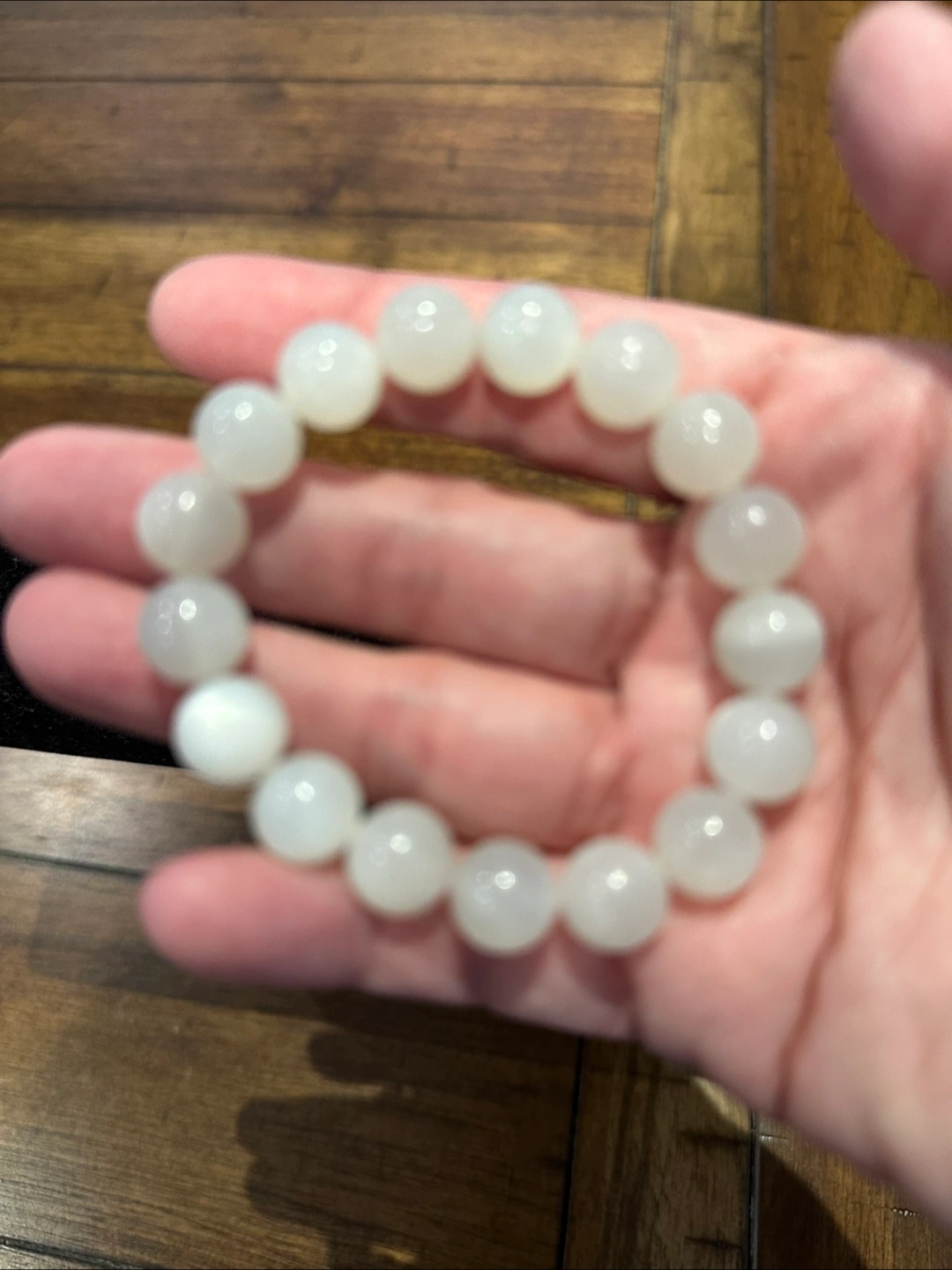 A simple white crystal beaded bracelet that can be worn with anything! The crystal stones are a lovely, soft white colour.