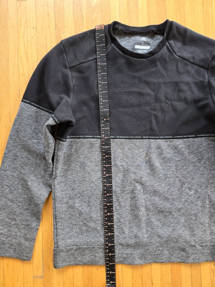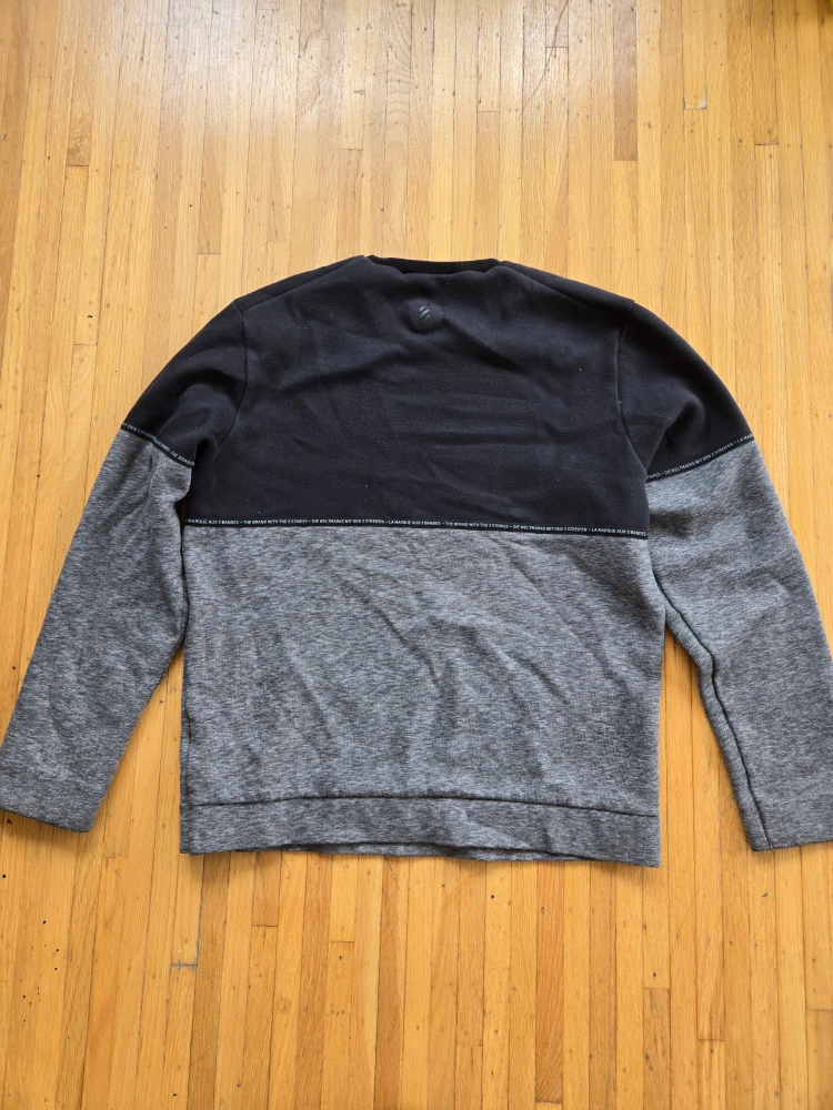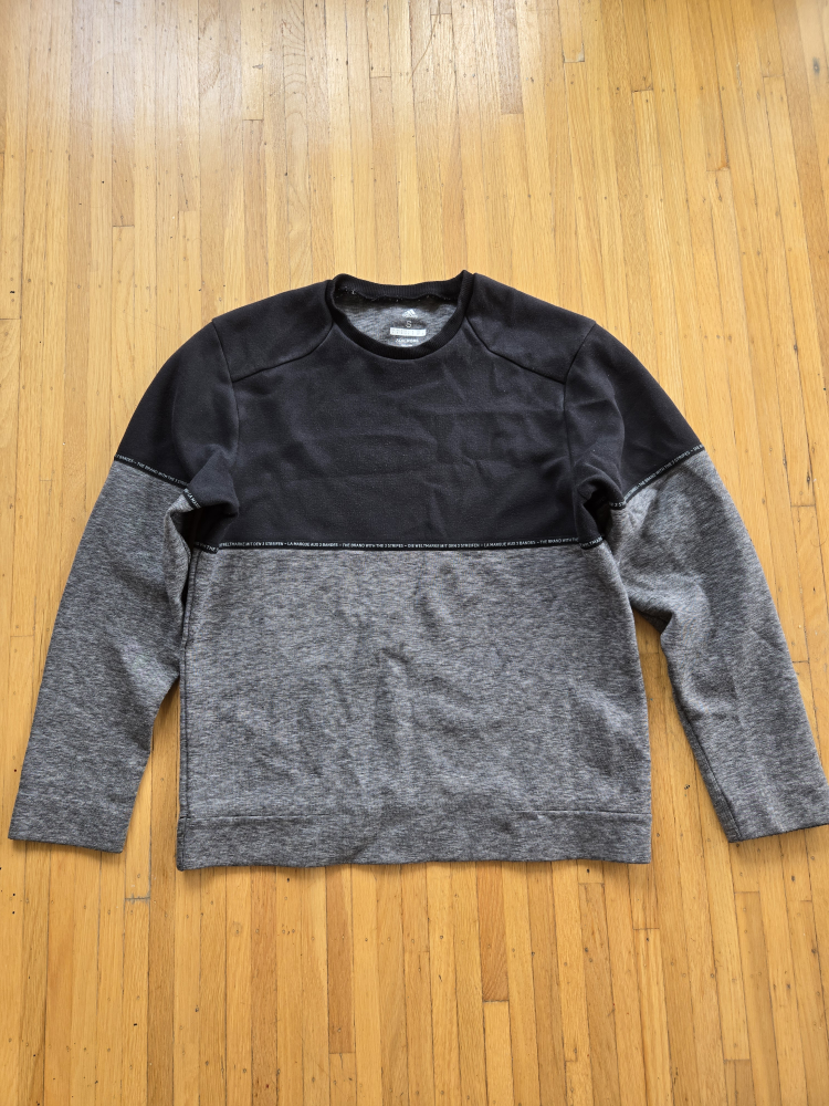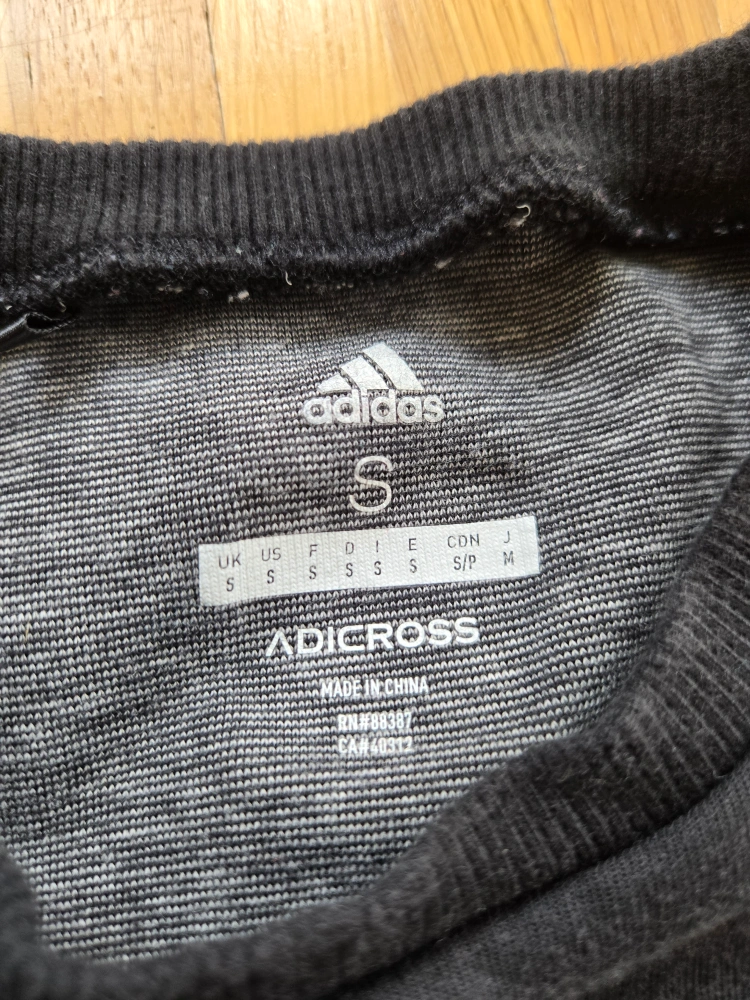 Selling an Adidas Adicross pullover! It's a size small and features a two-tone design with black on top and grey on the bottom. The material is soft and comfortable, perfect for layering or wearing on its own.