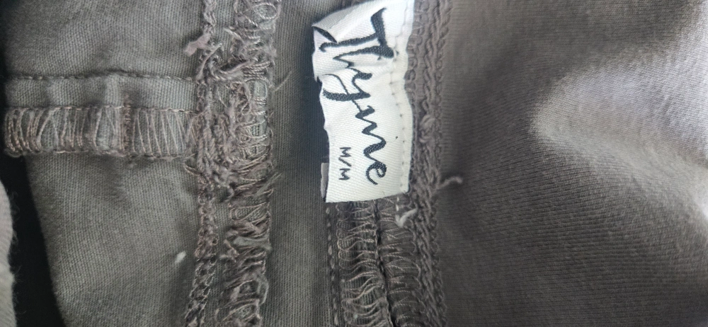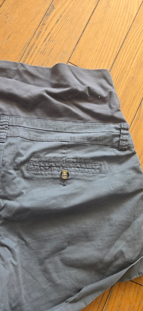 Gently used Thyme maternity shorts in size medium. These shorts are a stylish and comfortable option for expecting mothers. They feature a soft, stretchy belly panel for a great fit throughout your pregnancy.