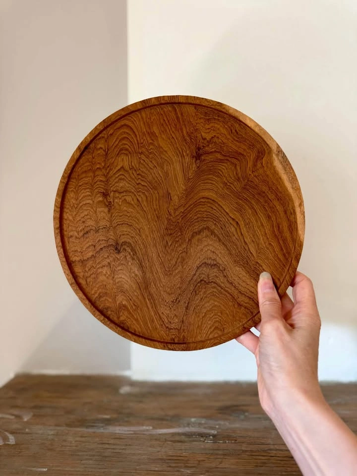 Beautiful round wooden serving tray. Unique wood grain. Excellent condition. Diameter 9.75” Porch pick up Christie St and St. Clair West Ave (10 min walk from St. Clair West Subway) Midtown Toronto