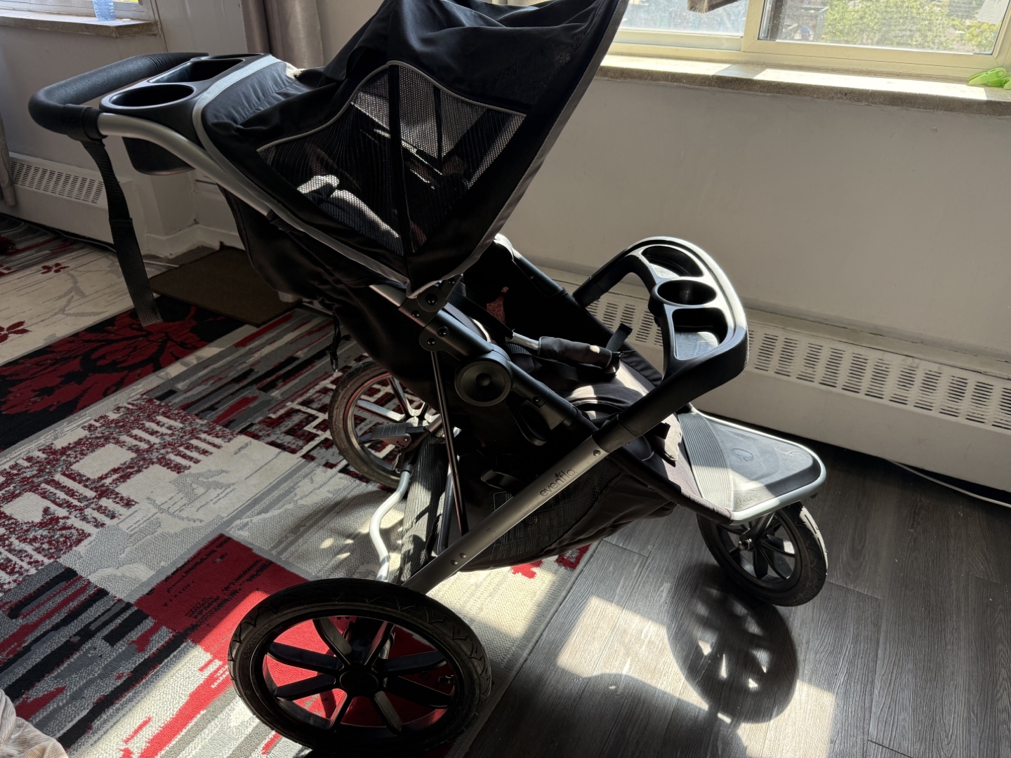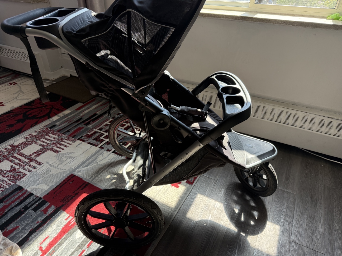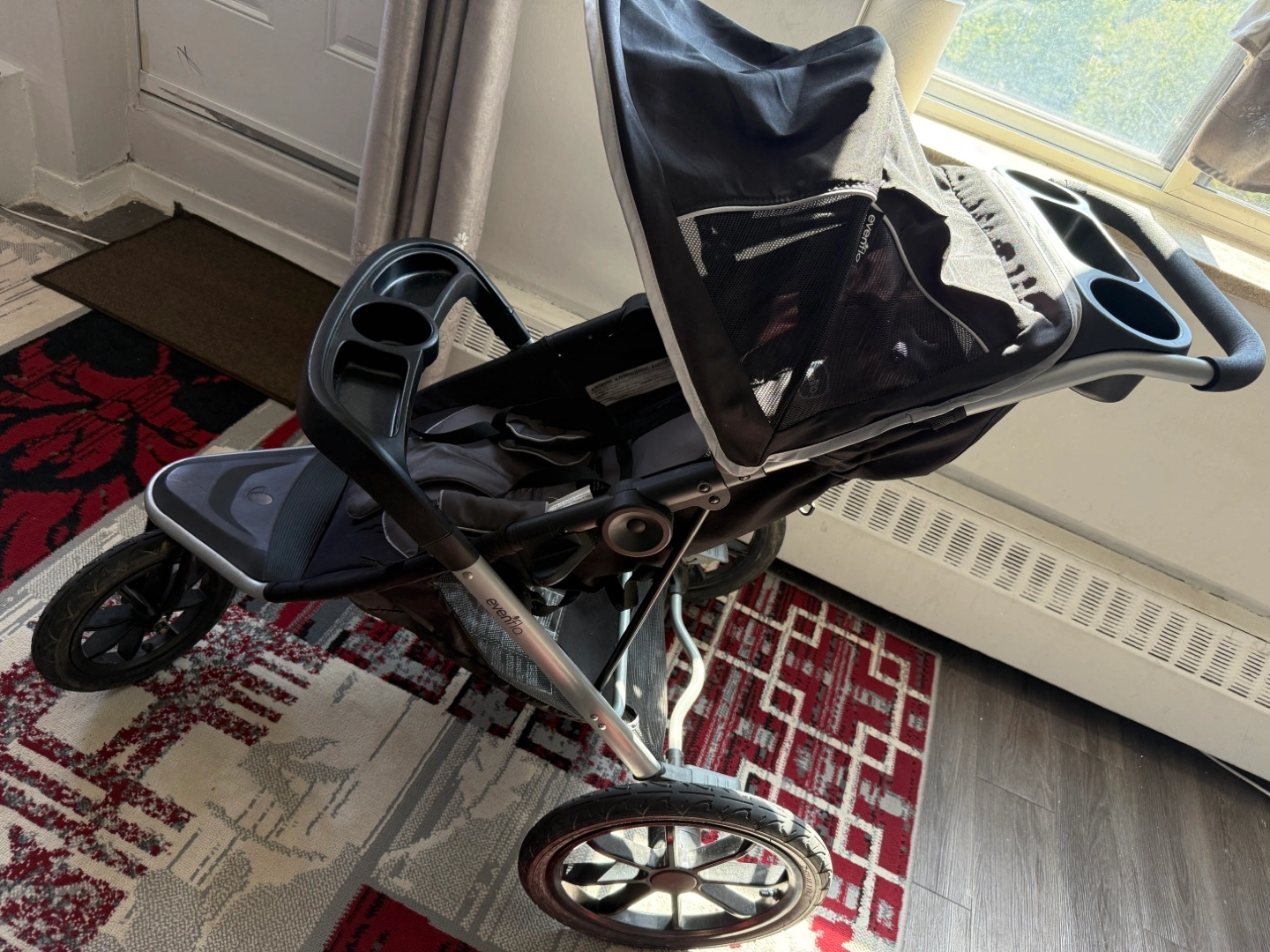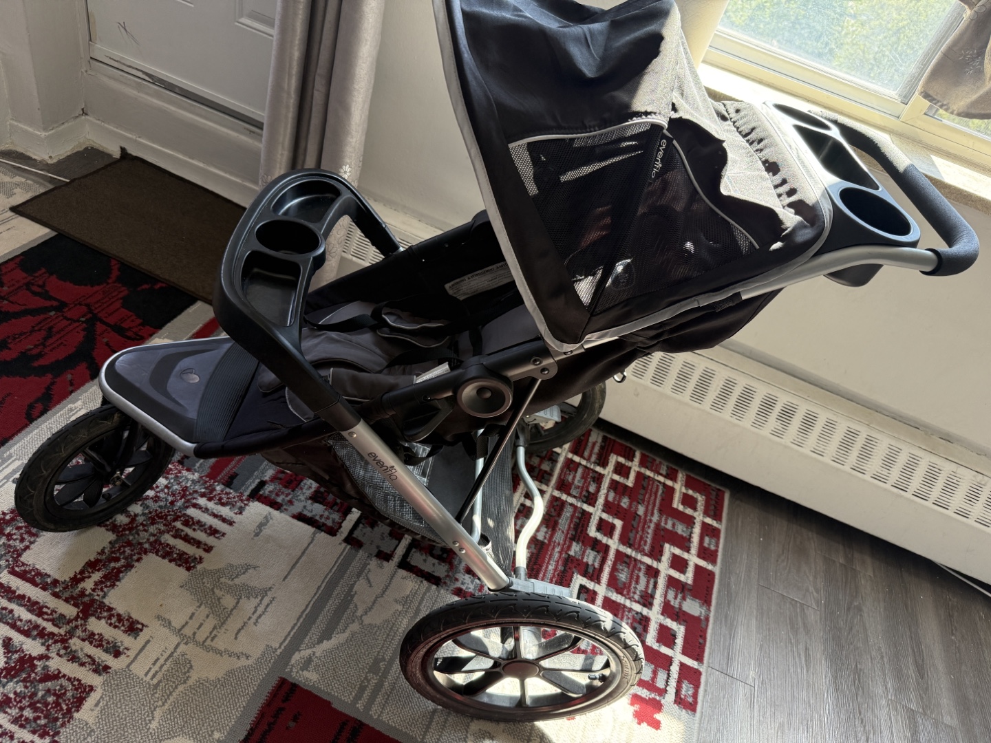 Selling an Evenflo stroller in great condition! It's perfect for taking your little one on walks around the neighbourhood. The stroller features a comfortable seat, a canopy to shield your child from the sun, and a convenient tray for snacks and drinks. It's a reliable and practical choice for parents on the go