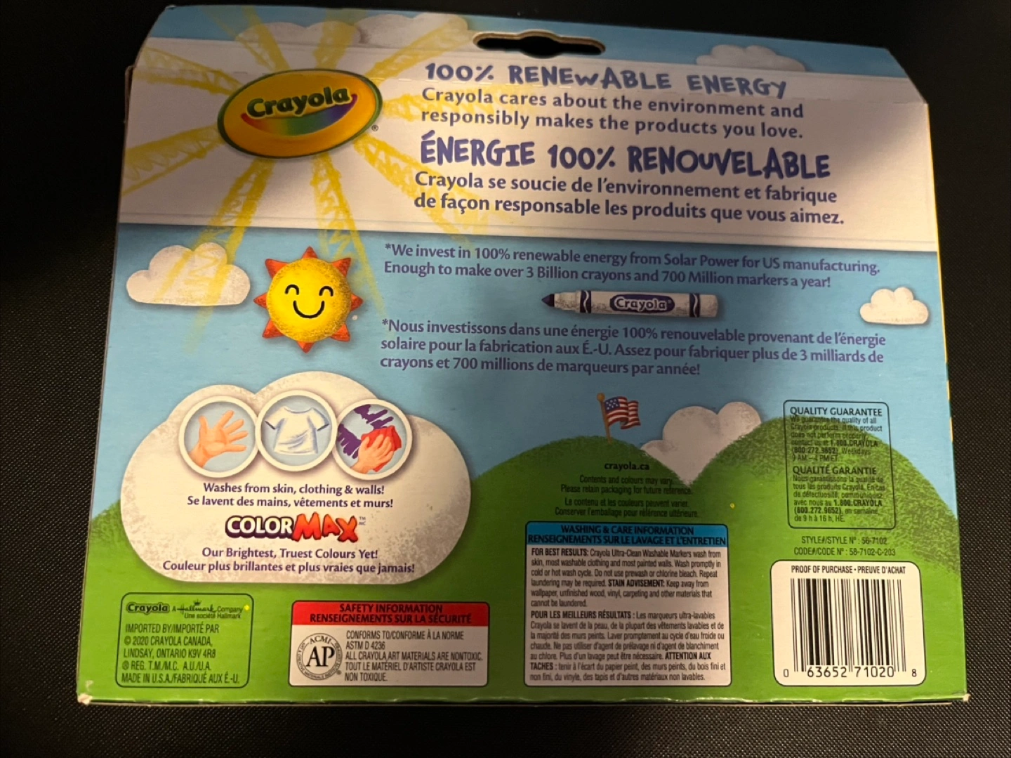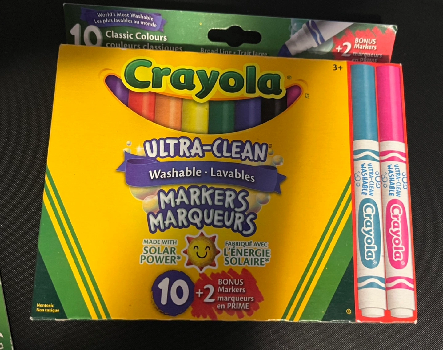NEW Crayola Ultra-Clean Washable Markers set comes with 10 classic colours plus 2 bonus markers.