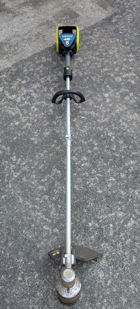 Selling a Yardworks 48V Max Li-Ion cordless grass trimmer.