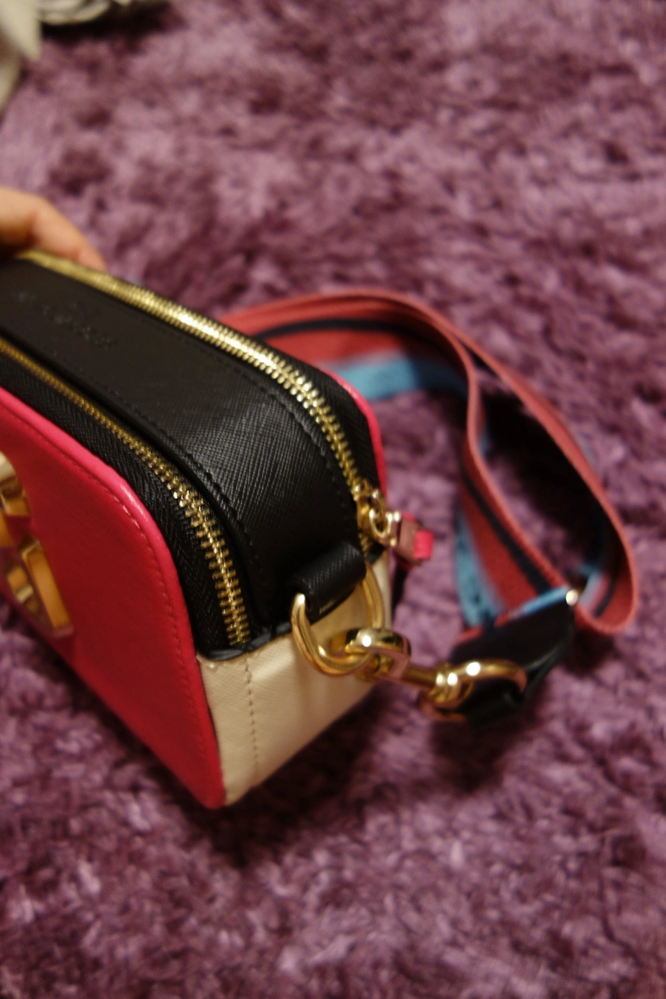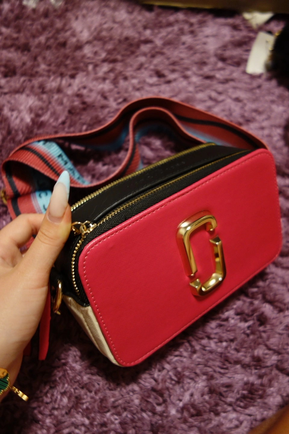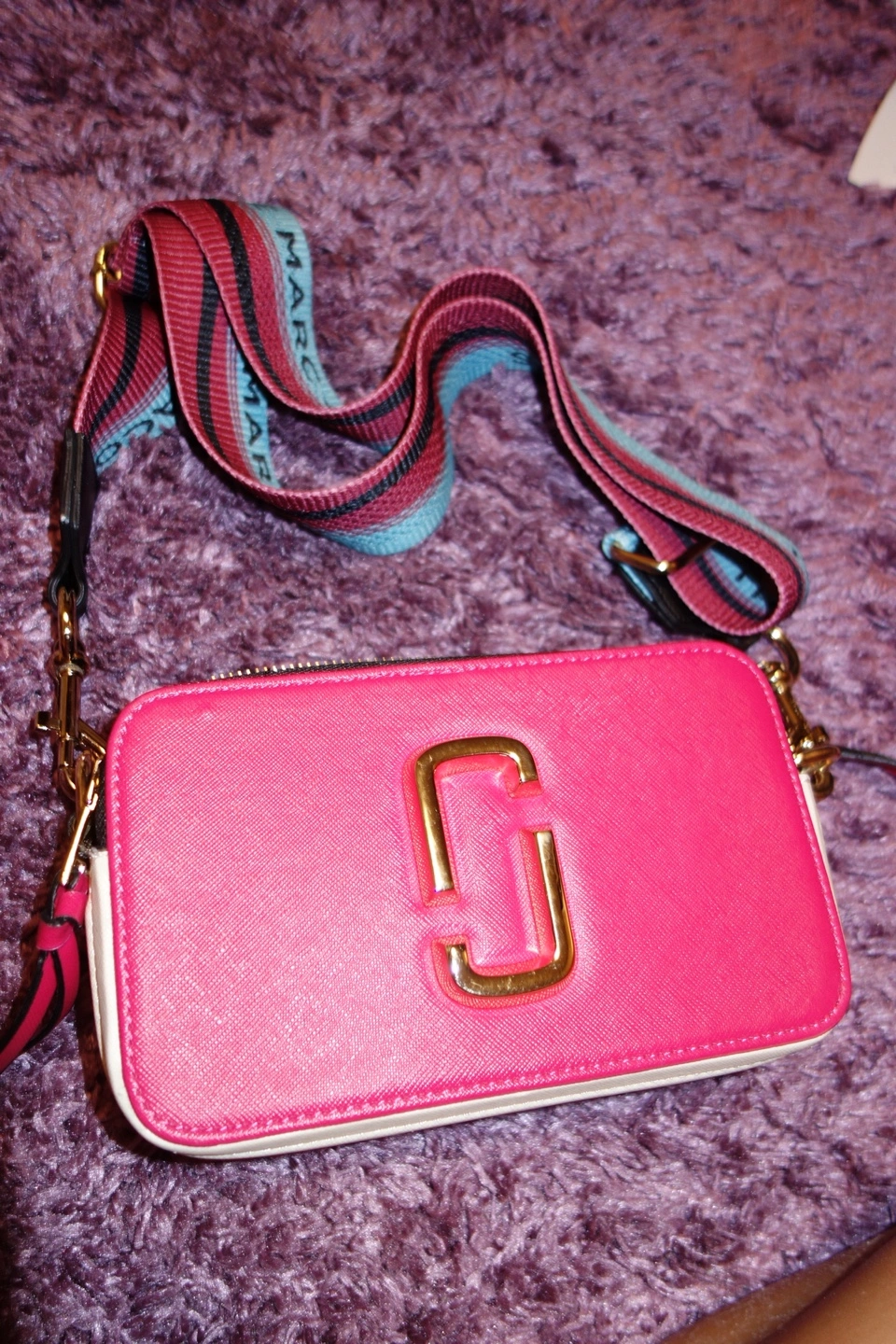 Selling a gently used Marc Jacobs Snapshot camera bag in a vibrant pink colour. It's a stylish and compact bag, perfect for carrying your essentials. The iconic double 'J' logo adds a touch of luxury! The bag features a detachable, adjustable strap for versatile wear.