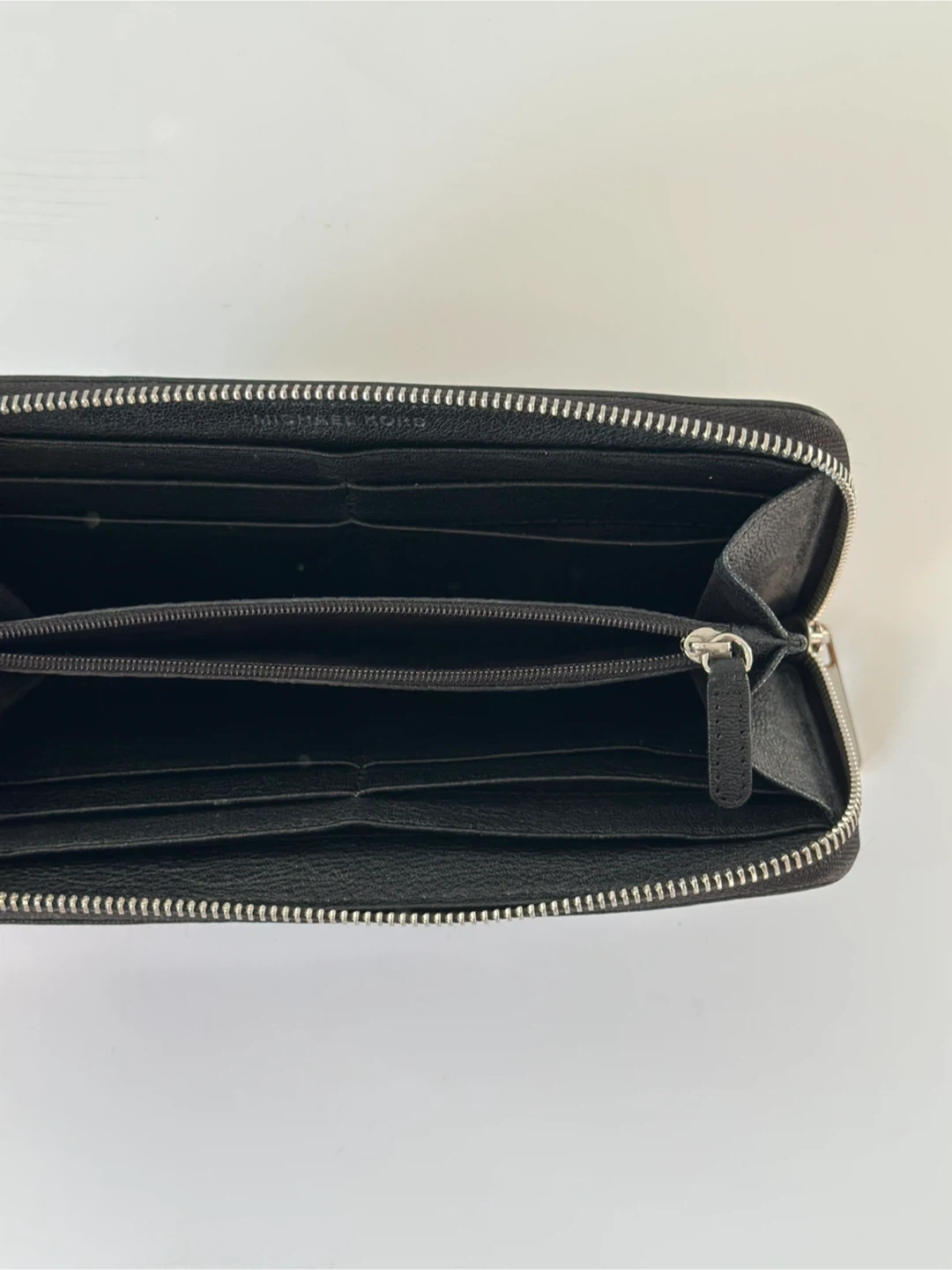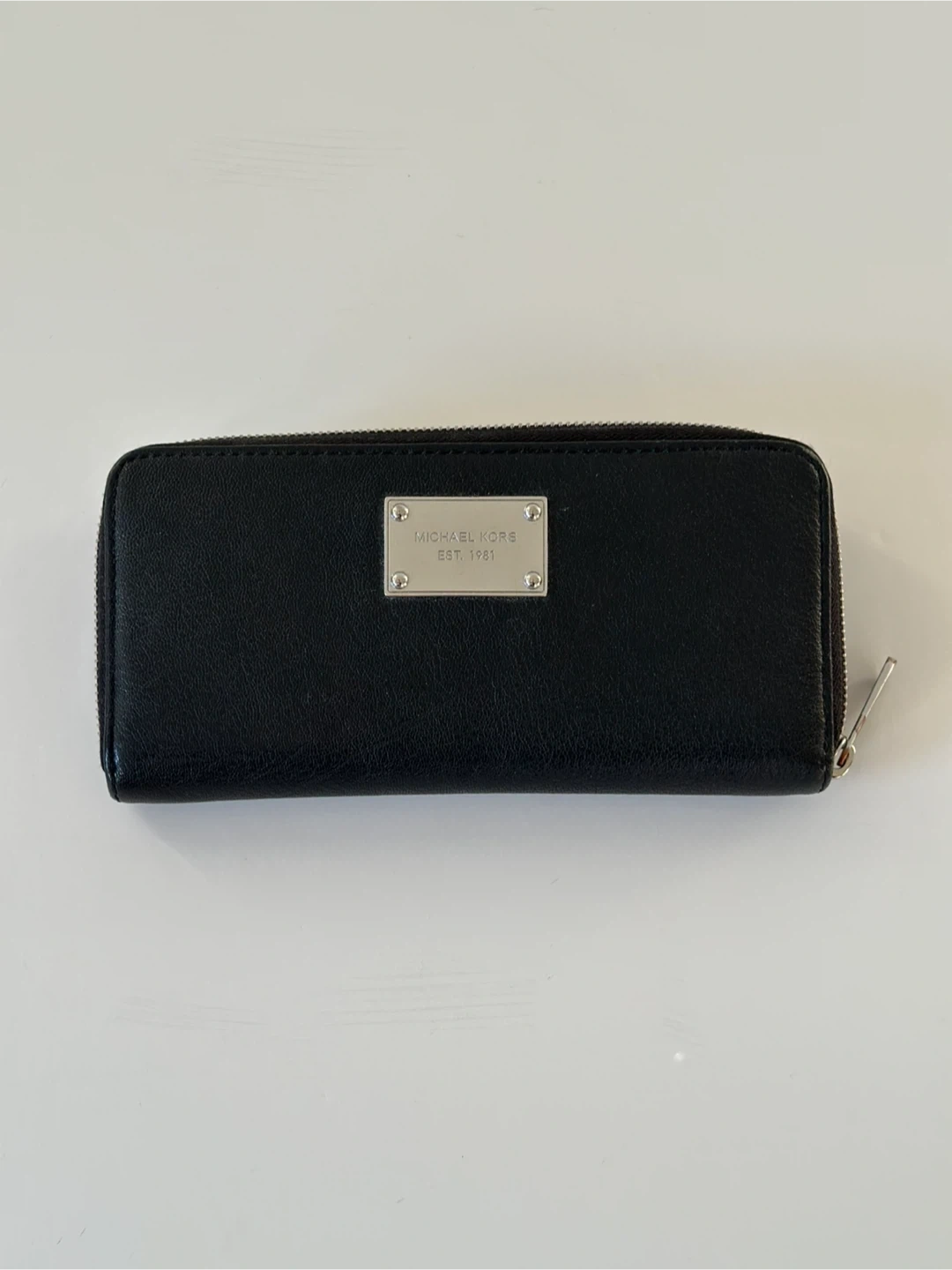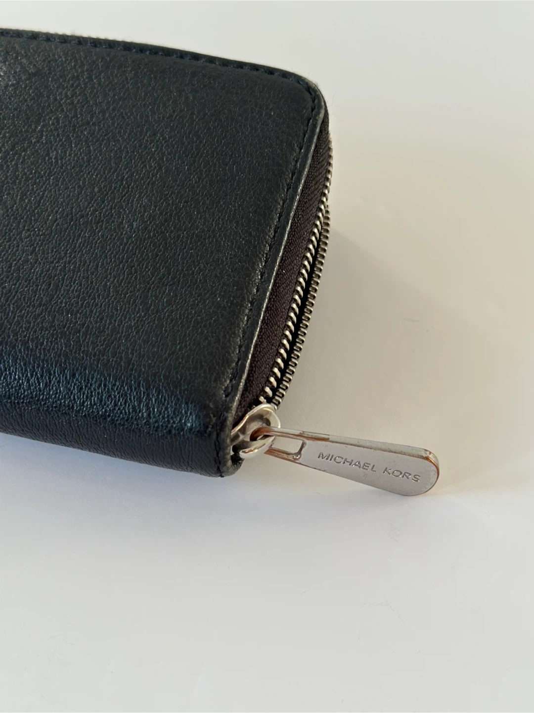 Selling a Michael Kors black leather wallet. It's in great condition and has lots of space for cards and cash. The zipper works perfectly. It's a stylish and practical accessory!