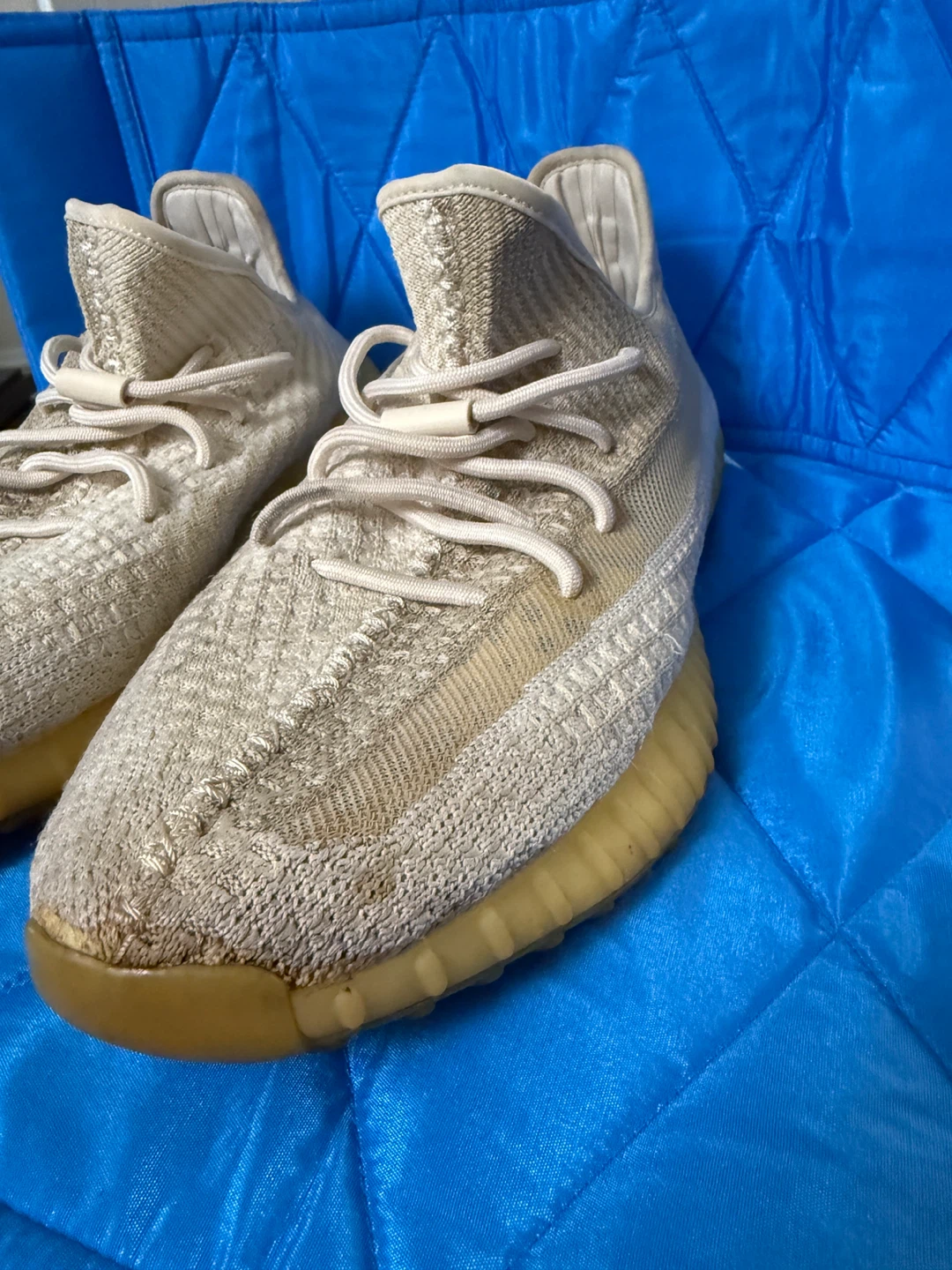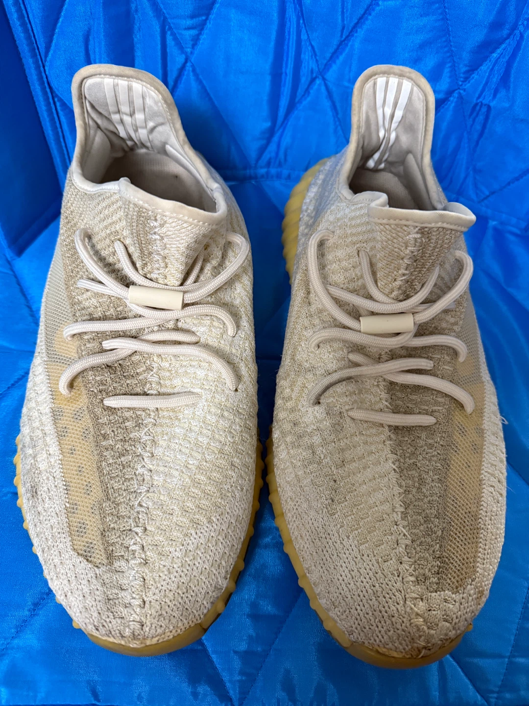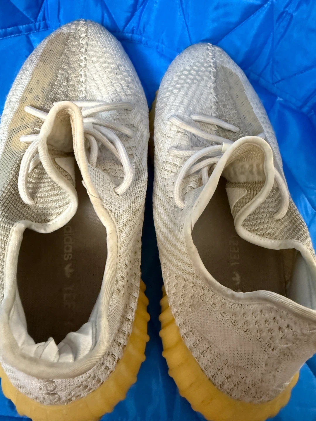Selling a pair of Adidas Yeezy Boost 350 V2 sneakers. They show some signs of wear, as you can see in the pictures.