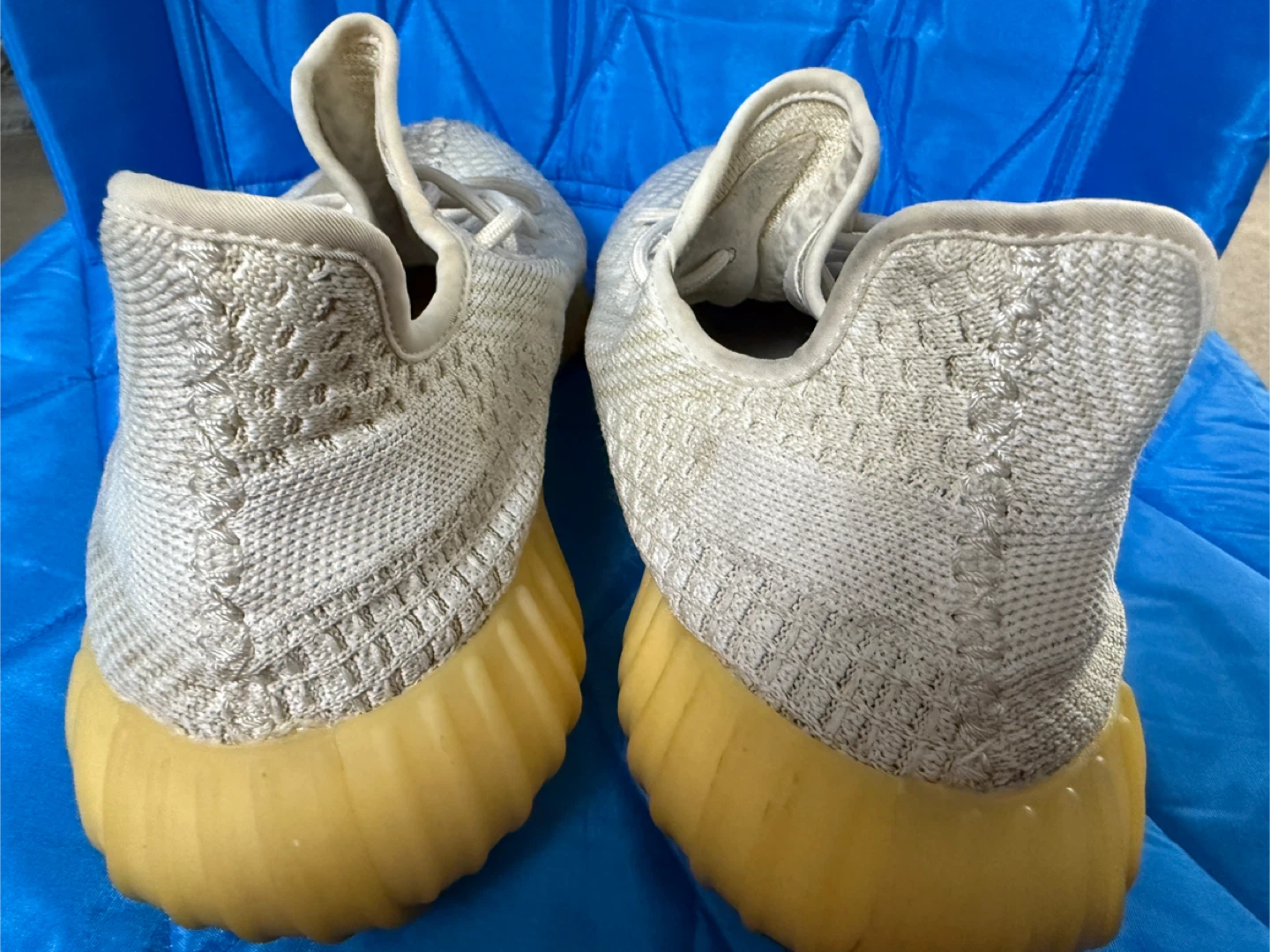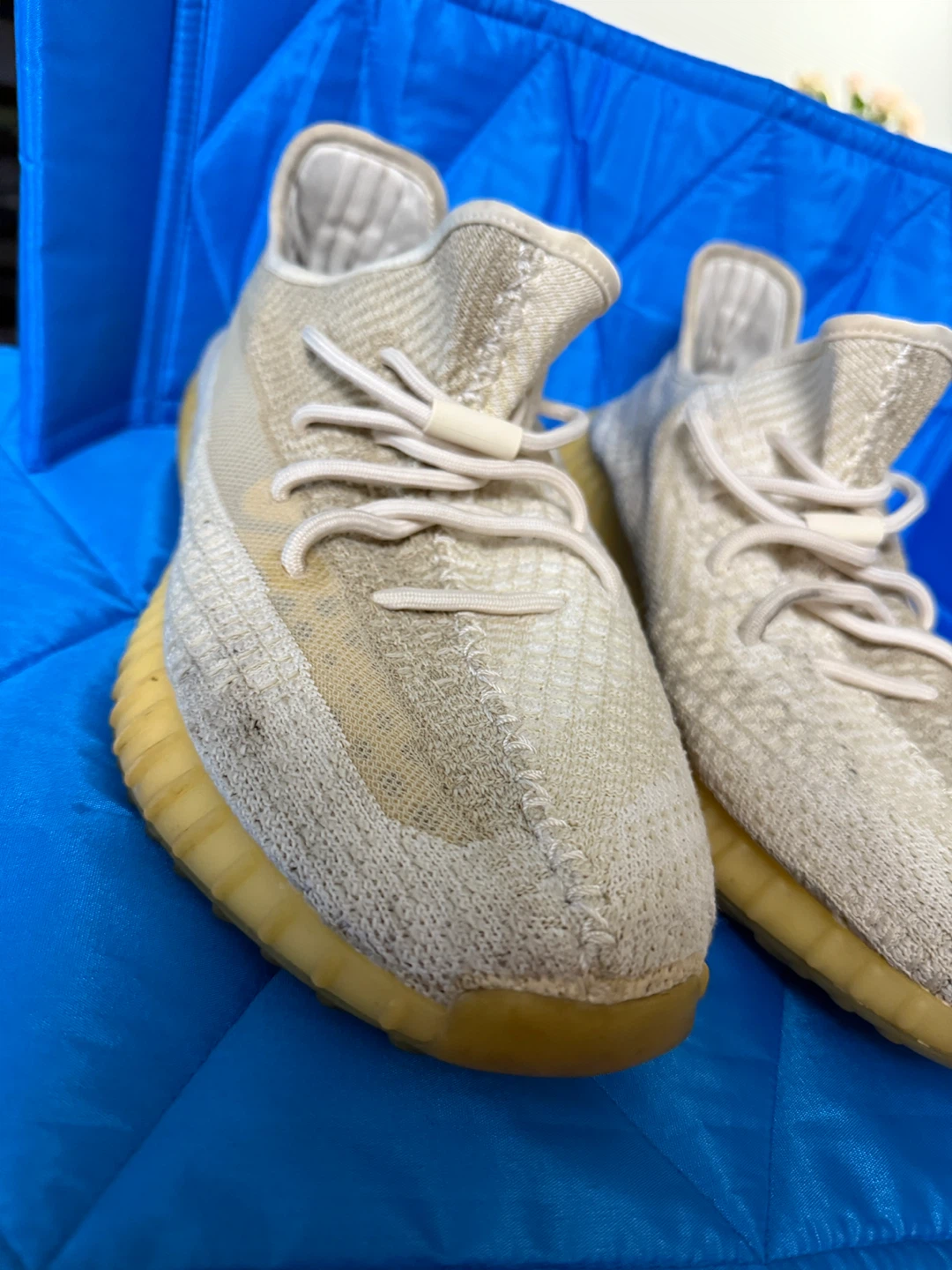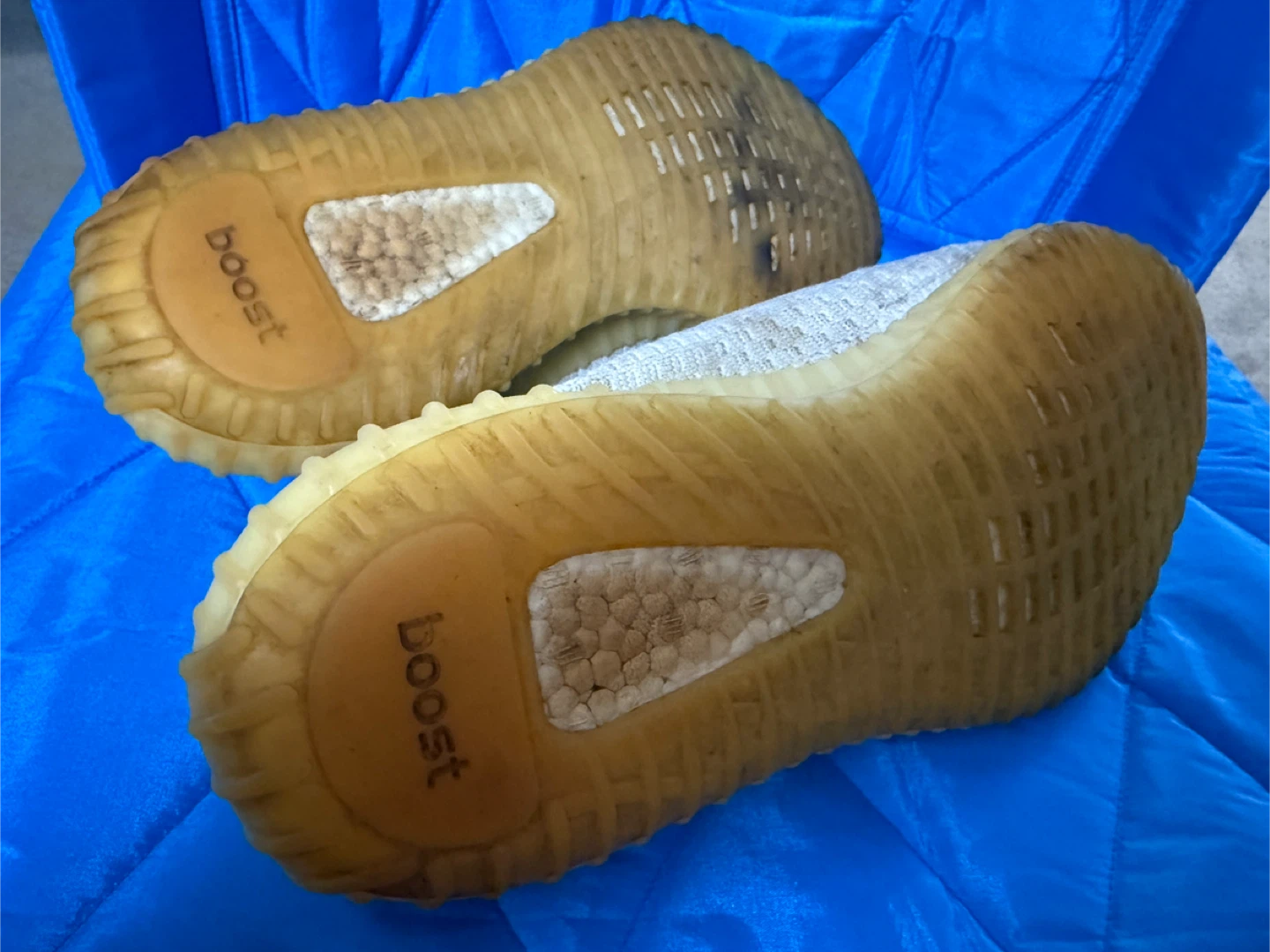 Selling a pair of Adidas Yeezy Boost 350 V2 sneakers. They show some signs of wear, as you can see in the pictures.