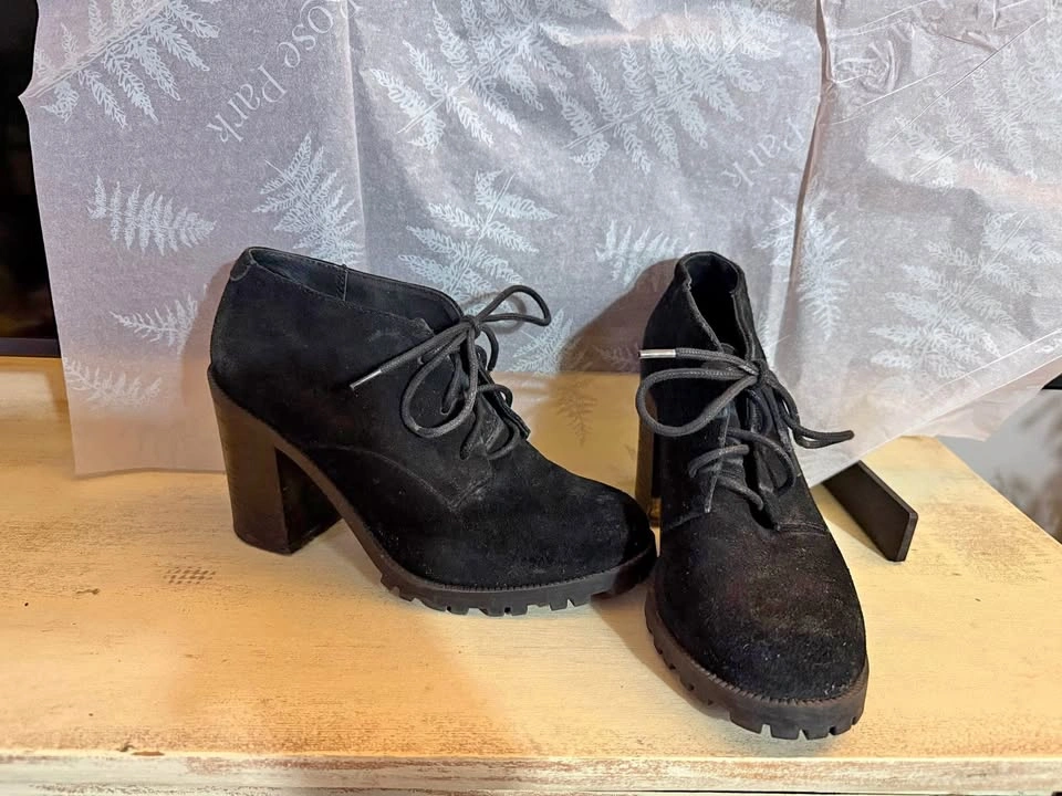 Black suede heeled booties size 7