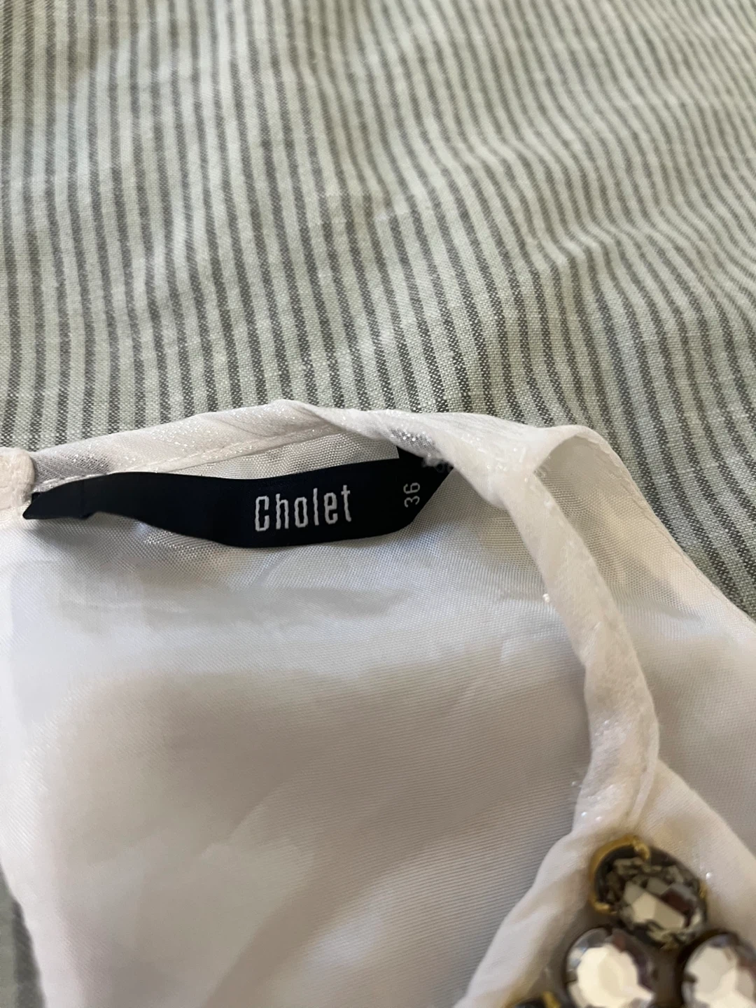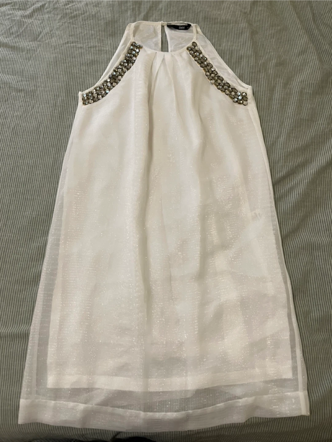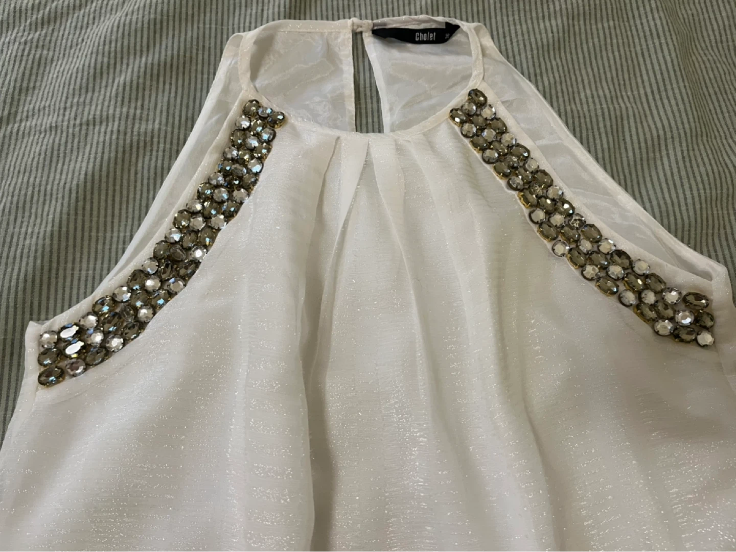 Selling a stunning white dress from Cholet. It features a halter neckline and some beading detail around the shoulders. Worn only once, so it’s in like new condition. Perfect for a party or special occasion!