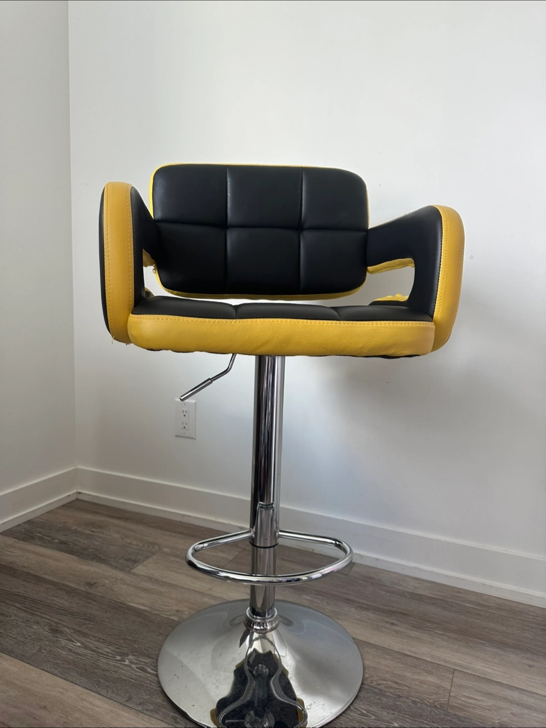Upgrade your space with this stylish yellow & black swivel bar stool. • Comfortable cushioned seat & backrest • Adjustable height with gas lift (perfect for bar, counter, or desk) • 360° swivel base with sturdy chrome footrest • Sleek modern design, adds a pop of color to any room • Barely used, in excellent like new condition ✨ Retails for much higher — grab it here for only $45! SERIOUS BUYERS ONLY Pickup Near Sackville/Dundas