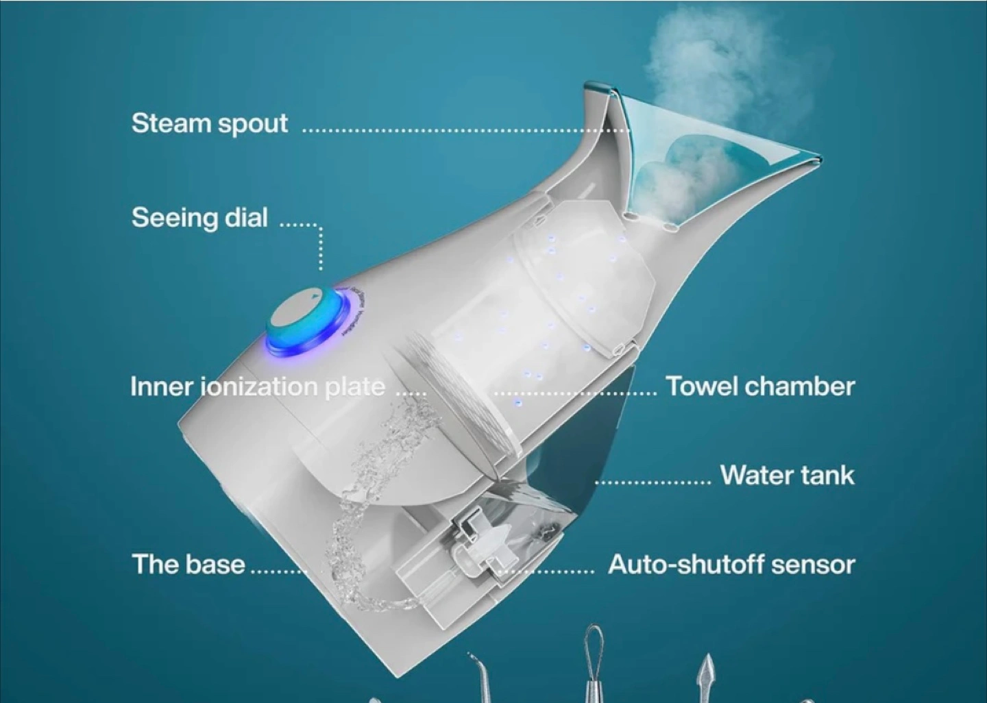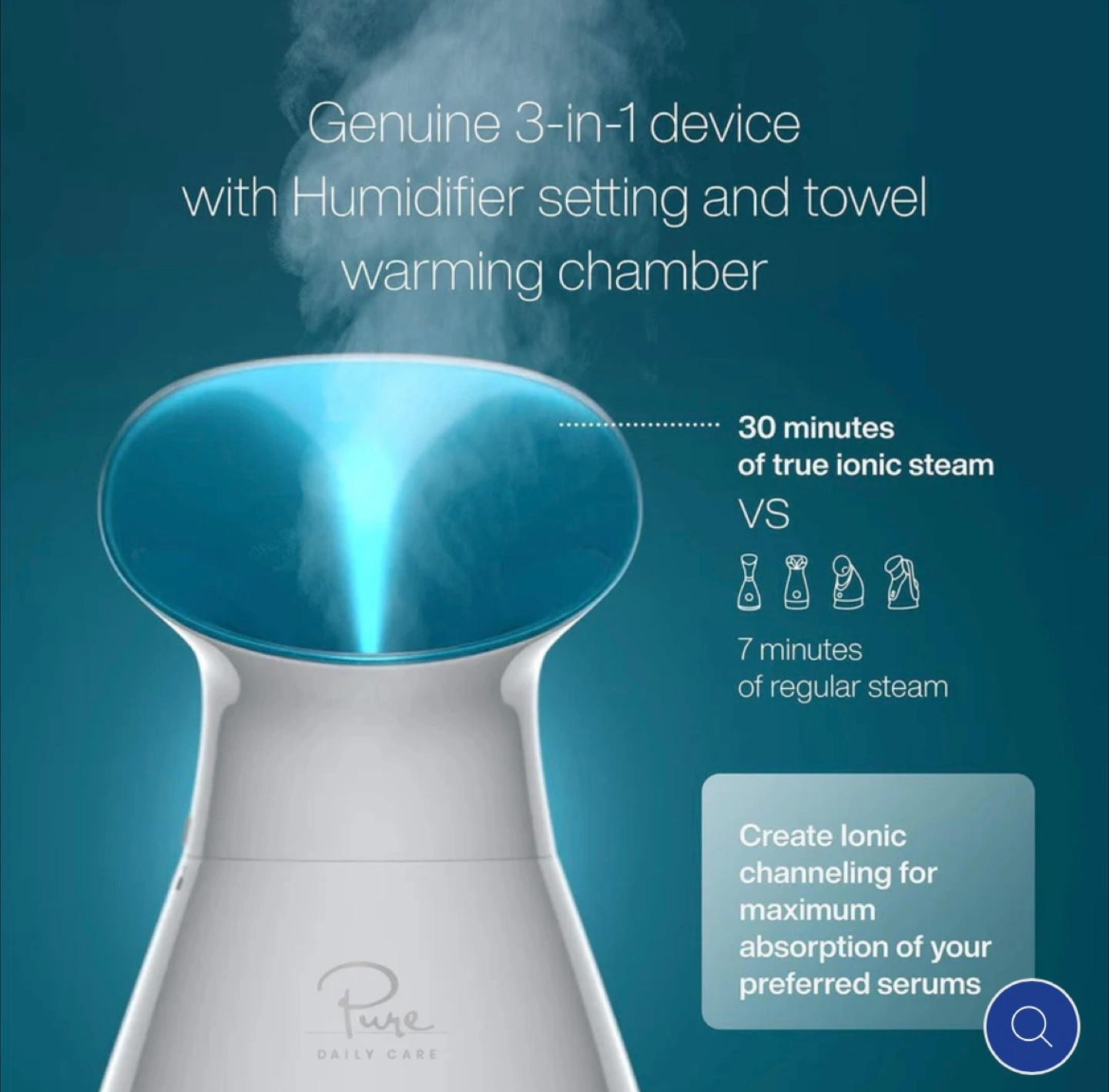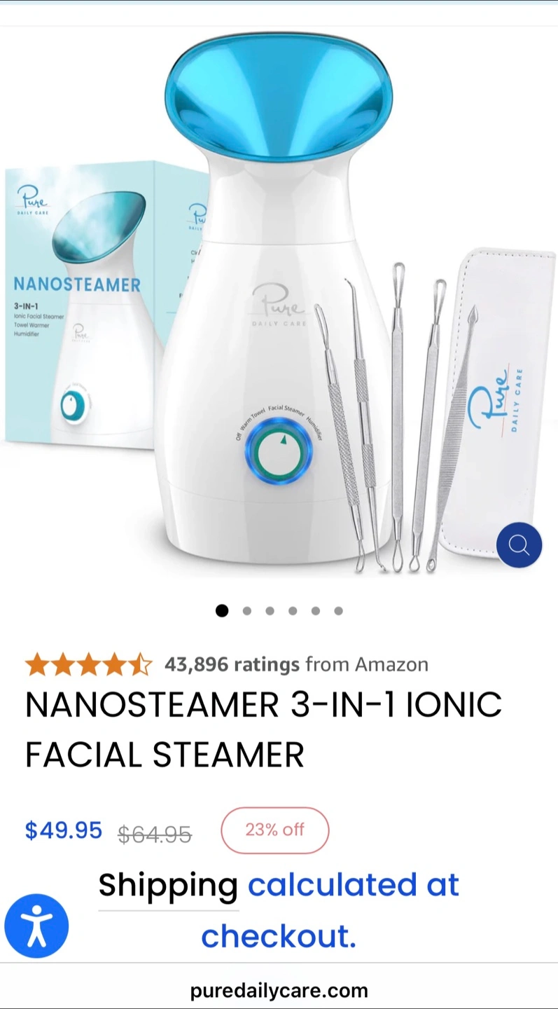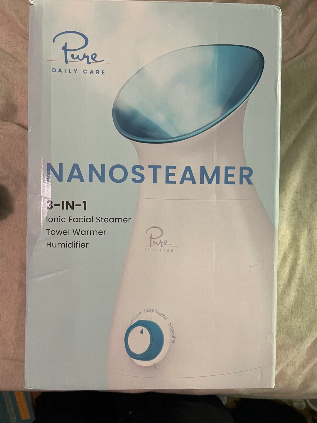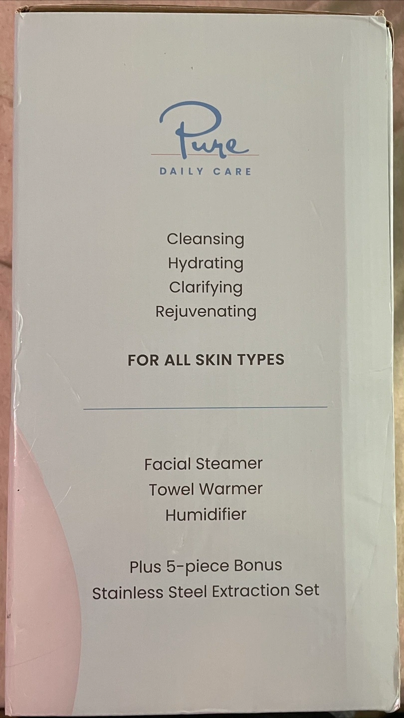 I'm selling a Pure Daily Care NanoSteamer. It's a 3-in-1 ionic facial steamer, towel warmer, and humidifier. It does NOT come with the 5-piece bonus stainless steel extraction set. It's for all skin types and helps with cleansing, hydrating, clarifying, and rejuvenating. The box is included