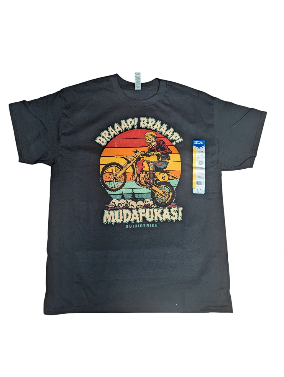 NEW MENS LARGE Funny Motocross T-Shirt Dirt Bike MX Racing Tee | retro vintage Braaap Mudafukas Zombie Motorcycle Shirt | Biker Attitude Gift for Riders