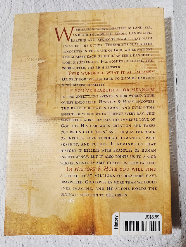 Selling the book 'History & Hope'. It's a revealing look at the great controversy between good and evil, and how to find hope for your future. If you're searching for meaning in the unsettling events in our world.