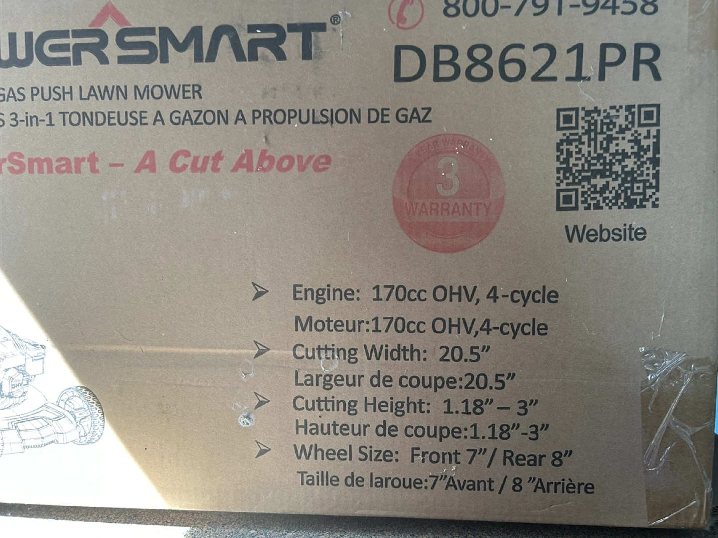Selling a PowerSmart gas lawn mower with a 170cc engine. It's in good working condition and ready to tackle your lawn this season!