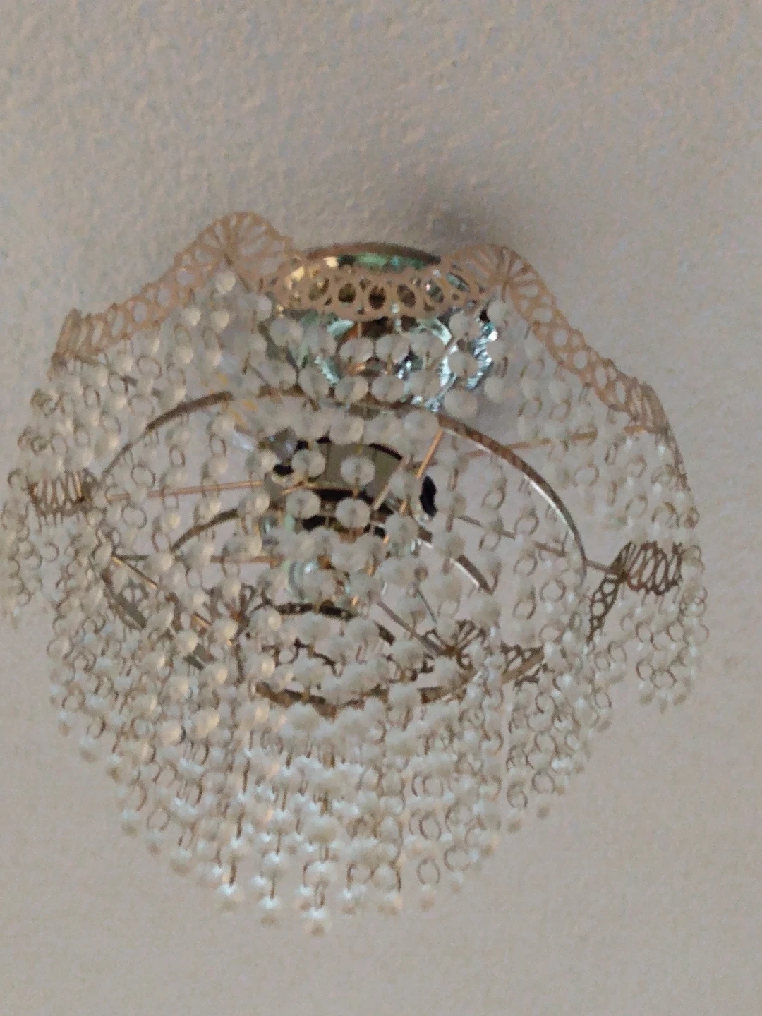 This Swarovski Crystal chandelier is in excellent condition, cleaned and properly stored. No missing parts. Takes 4 small bulbs and is a foot wide.
