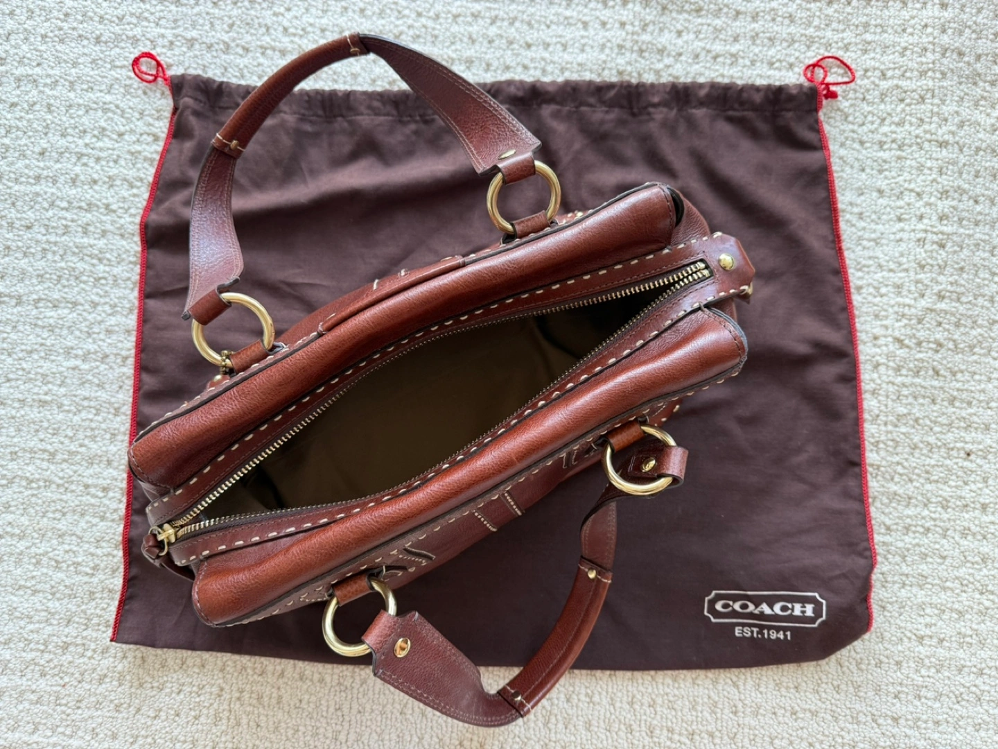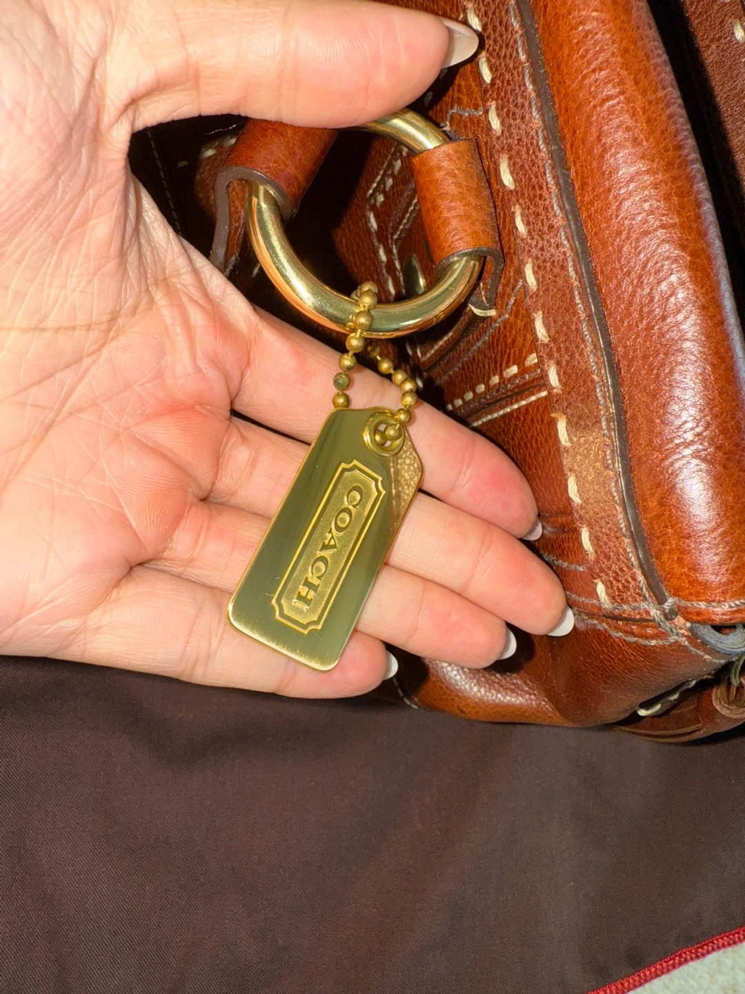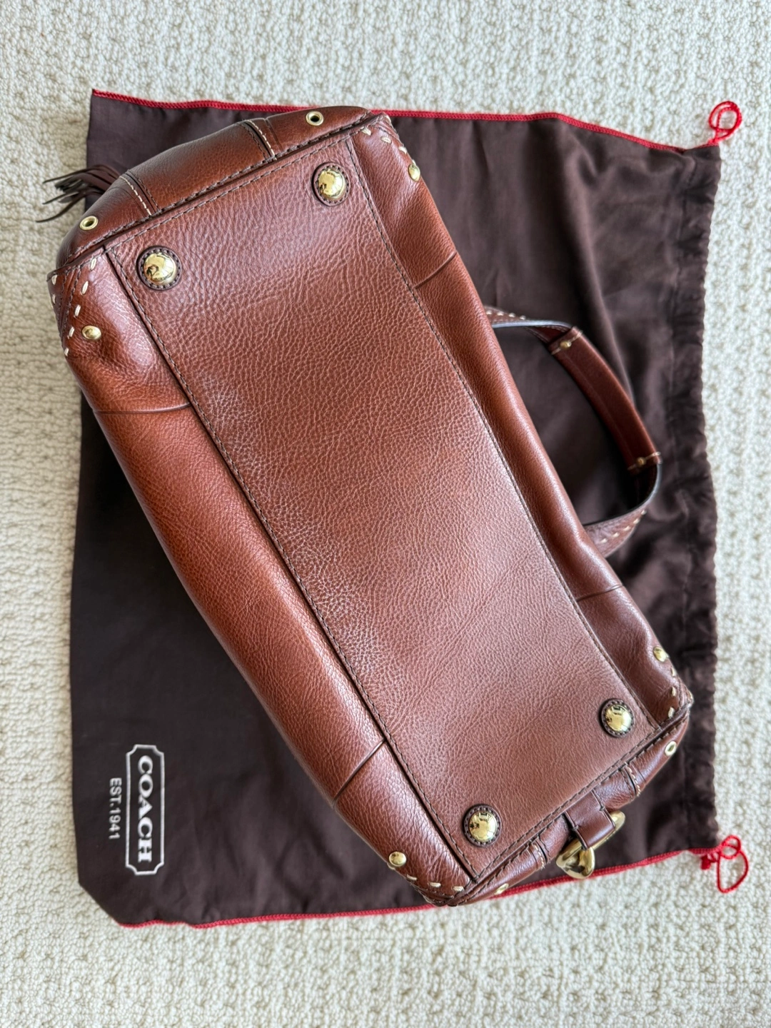 This is a lovely Coach satchel handbag in cognac leather. It's in great condition and comes with its original dust bag. Perfect for everyday use!