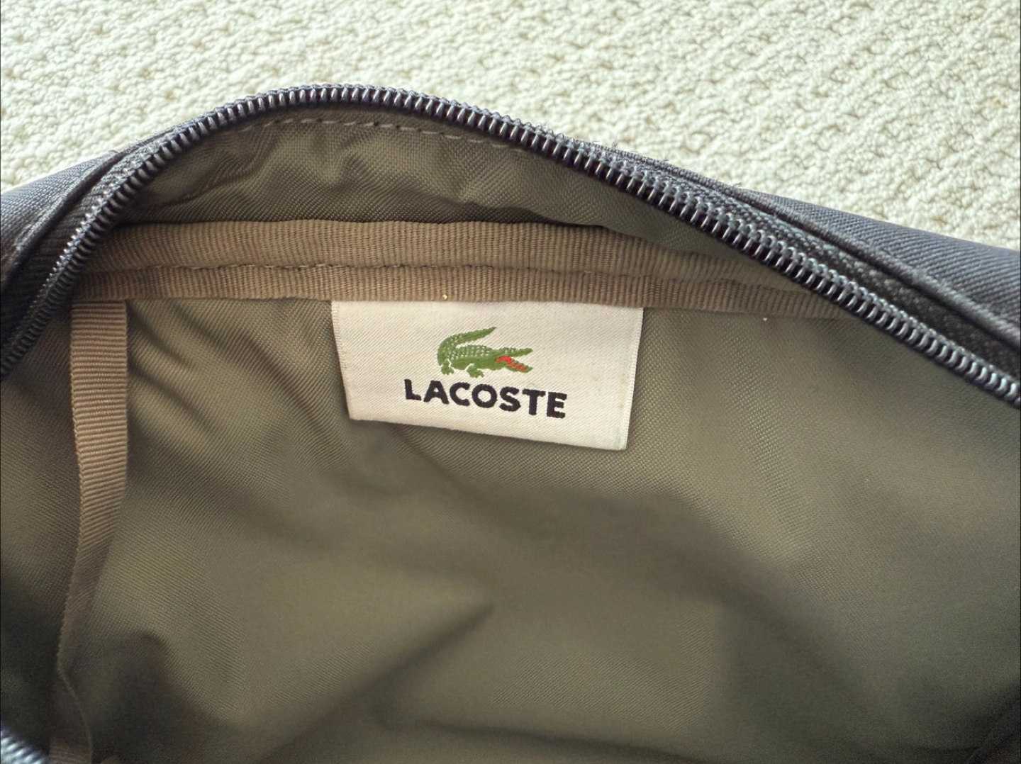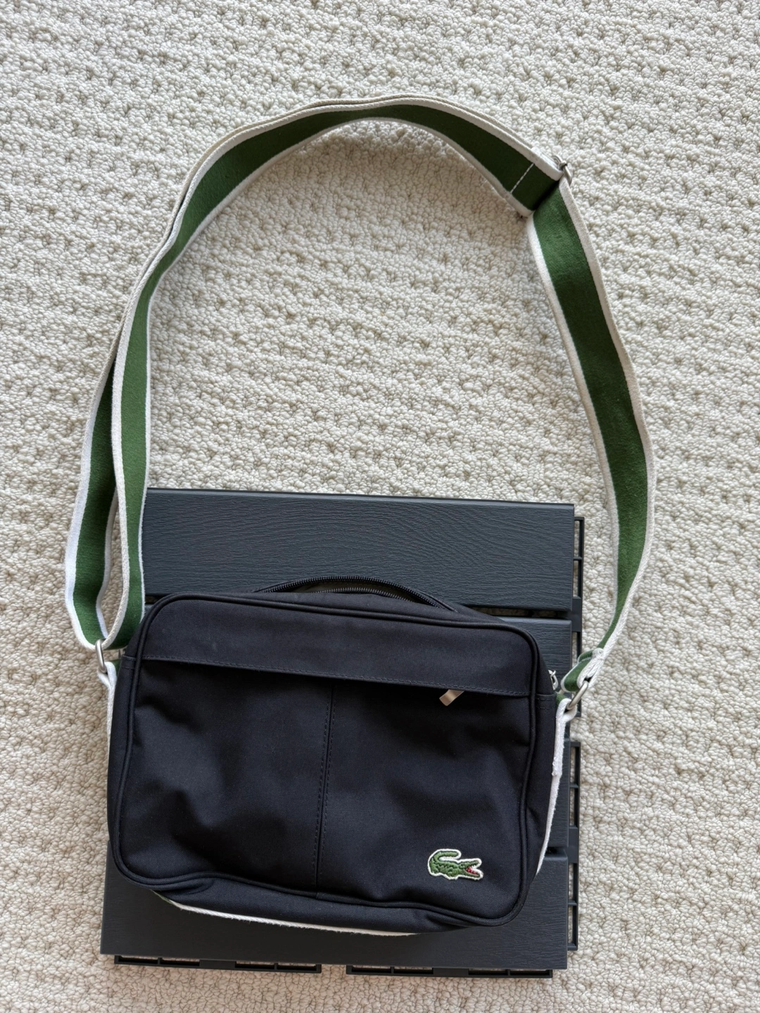 Selling a Lacoste crossbody bag in black and green. It's the shoulder camera bag L71. Perfect for carrying your essentials around town!