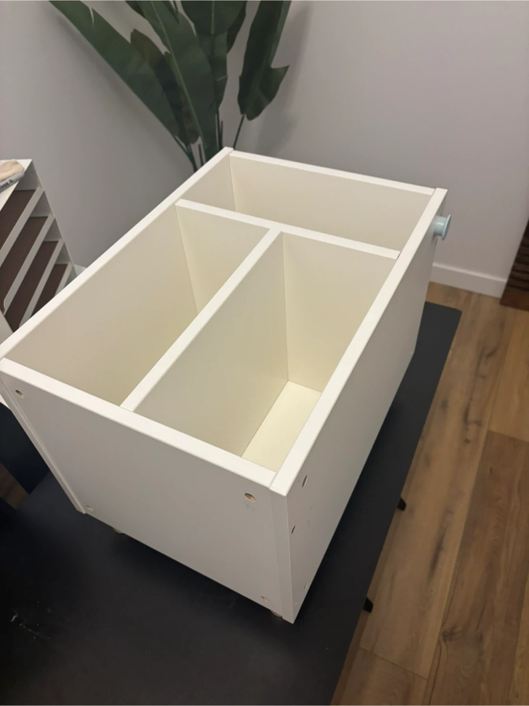 Selling a handy white storage box! It has dividers inside, perfect for organizing all sorts of things. It's in great shape and ready for a new home