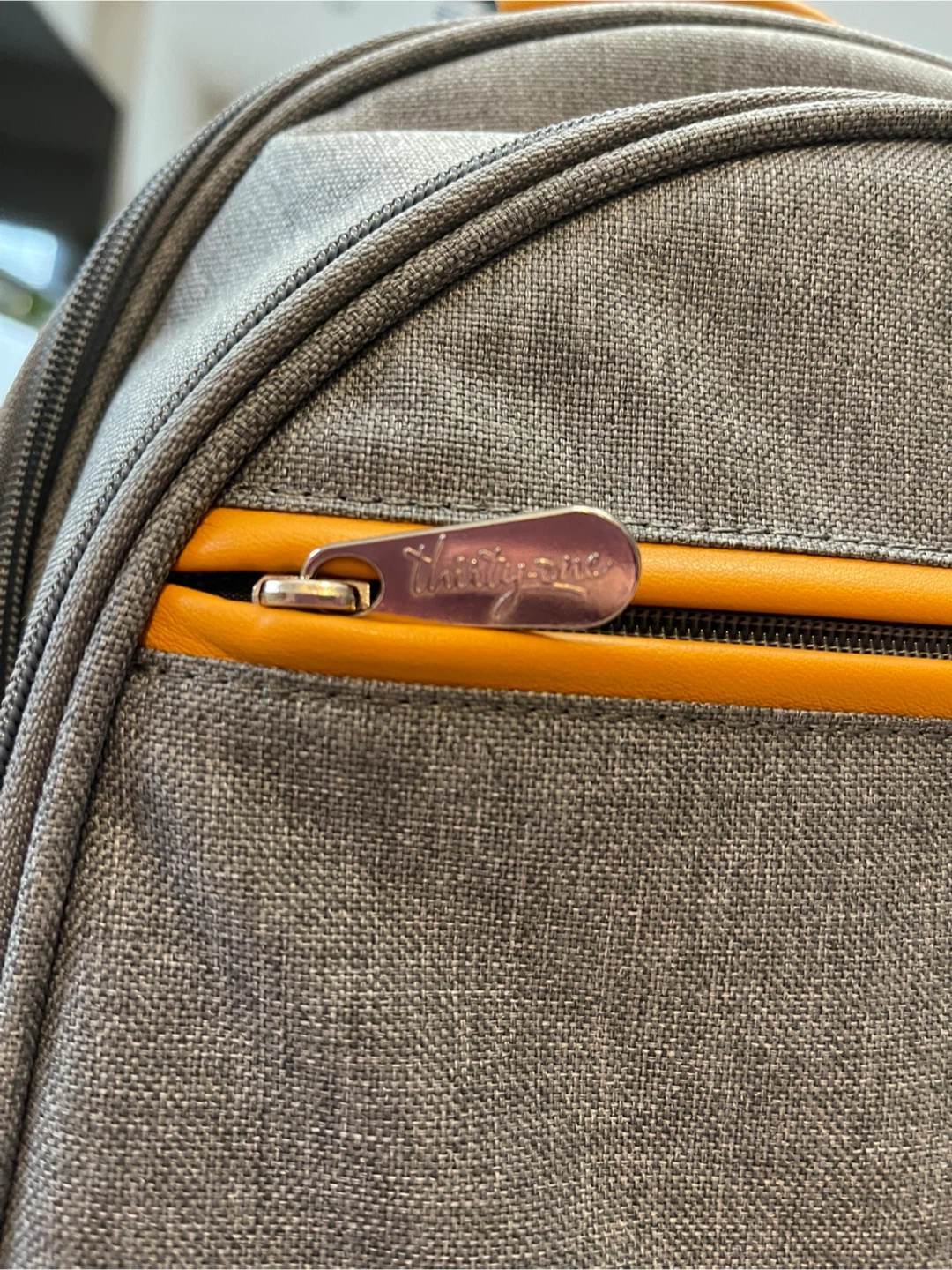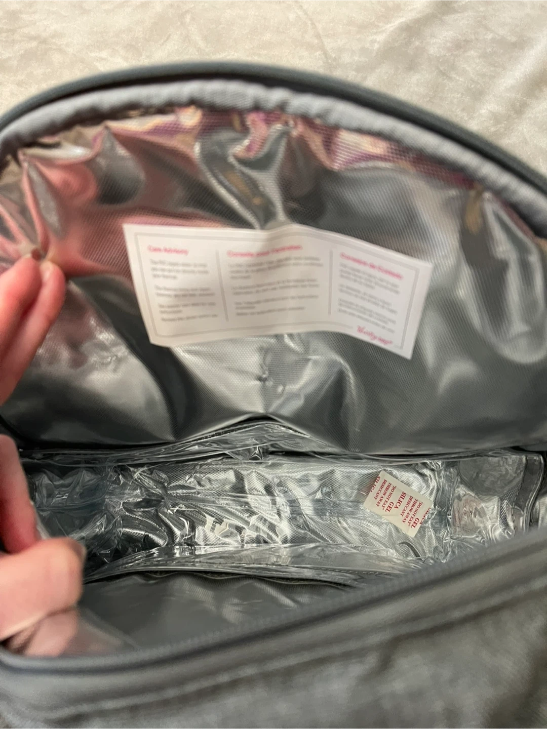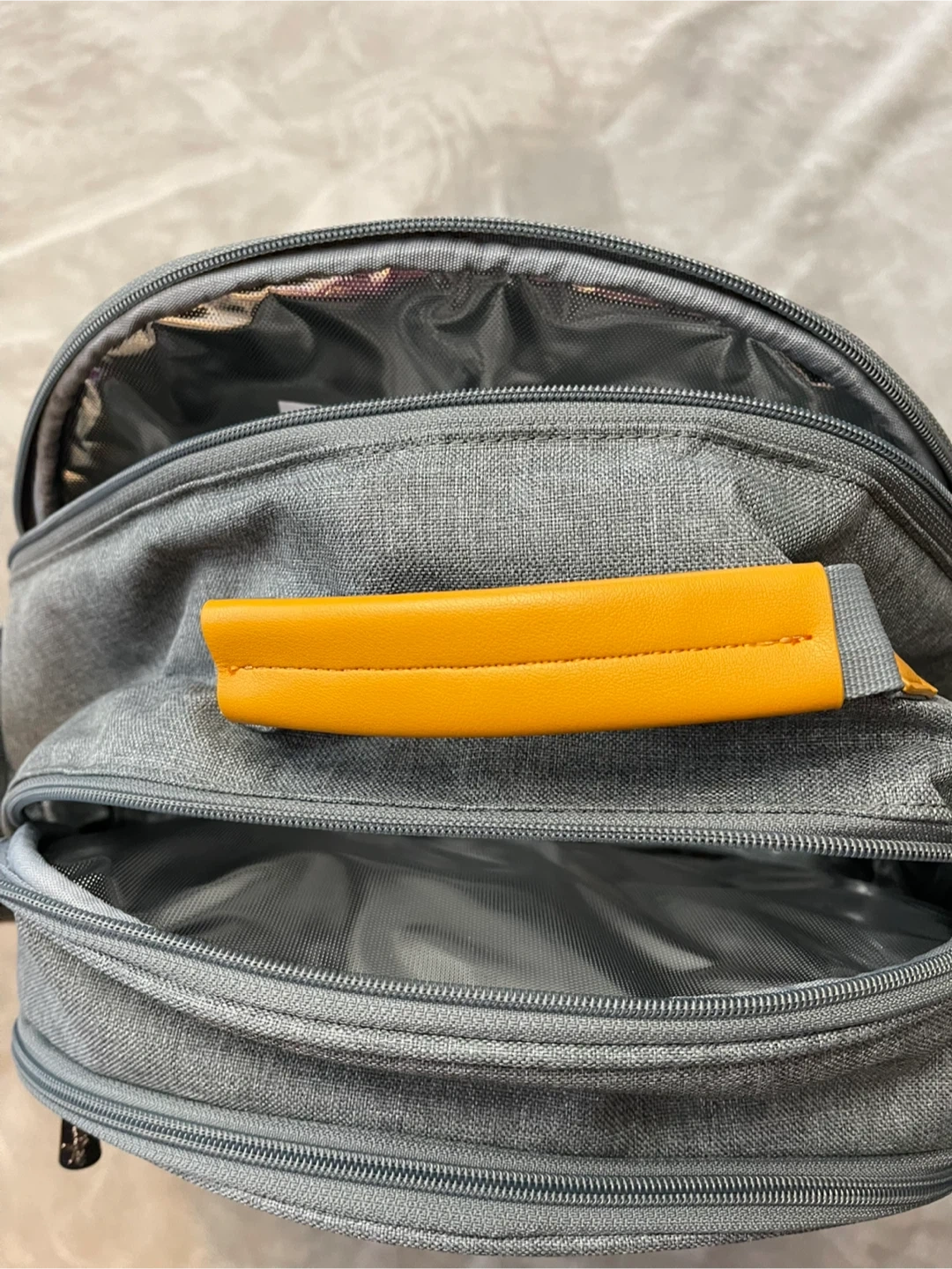 This Thirty-One picnic backpack is perfect for outdoor adventures! It comes with everything you need for a lovely picnic, including cutlery, plates, glasses, and even a blanket. The backpack is a stylish grey colour with yellow accents and has insulated compartments to keep your food and drinks at the perfect temperature.
