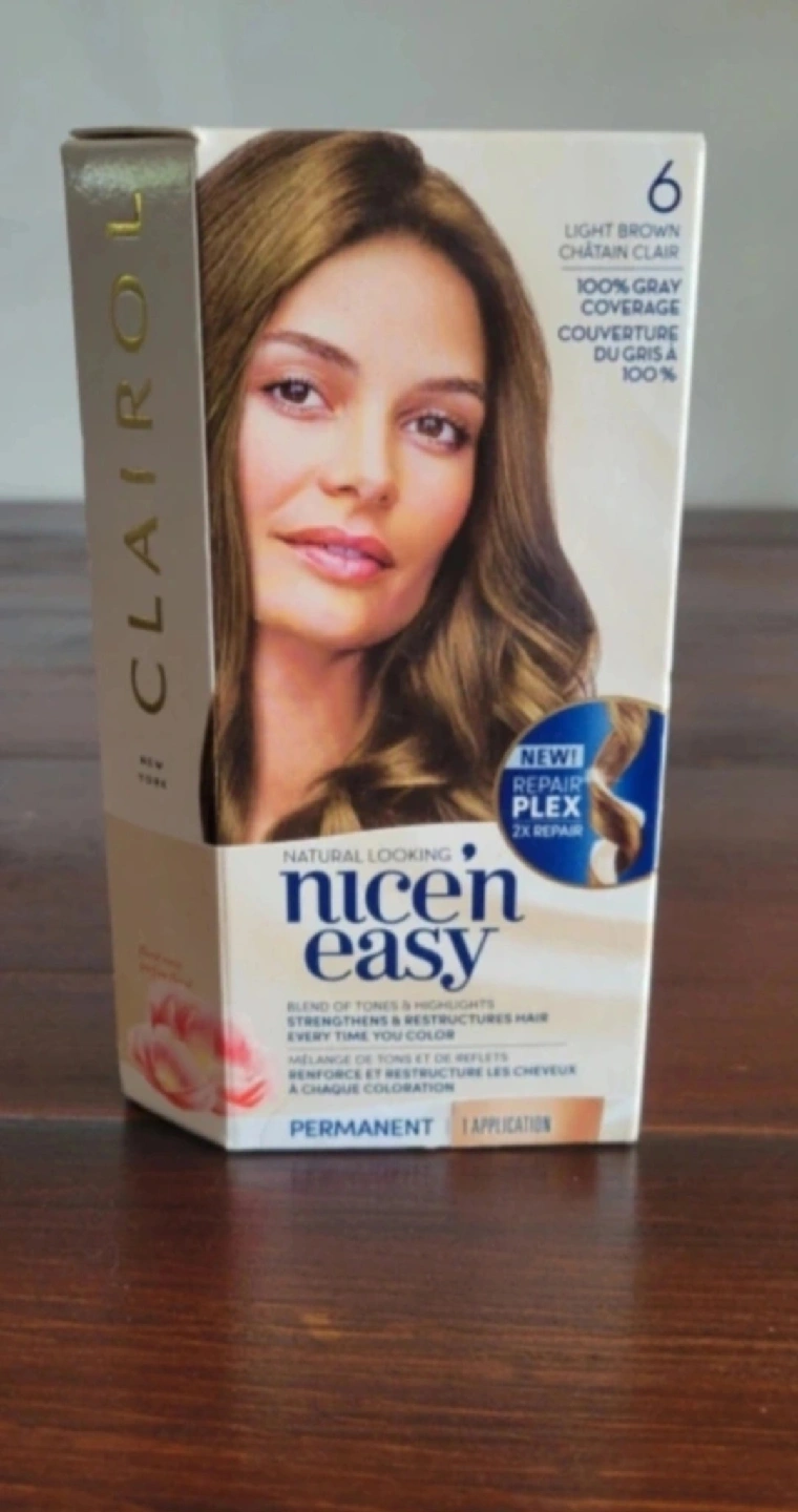 Giving away a Clairol Nice'n Easy hair dye in light brown (shade 6). It's a permanent hair colour that provides 100% gray coverage. This blend of tones and highlights strengthens and restructures hair every time you colour. It also contains Repair Plex for 2x repair. Check out my other listings for other great items! Pickup only at Brimley and Eglinton Rd in Scarborough