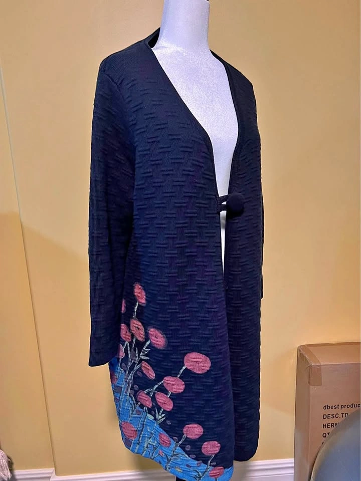 From my personal closet a Donna White Coats Single Button Floral Hand Painted Knit Duster Cardigan—never worn. Super cute on! Original price was $189. Selling because it’s a bit too small for me.
