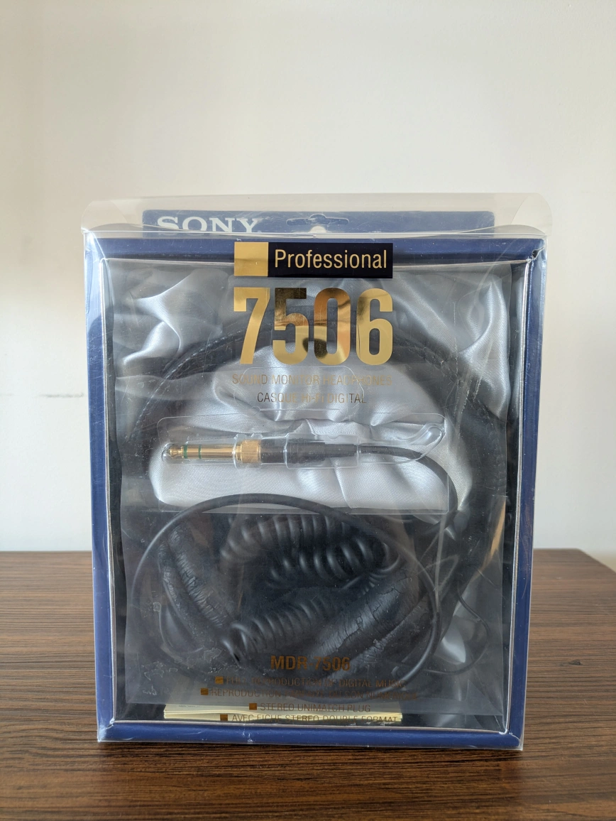 Selling a Sony MDR-7506 professional headphones, including the original box. It was used few times. These are known for their sound monitor quality and are a favorite in the audio industry. Perfect for anyone looking for reliable and accurate sound reproduction. Comes with all original packaging and accessories