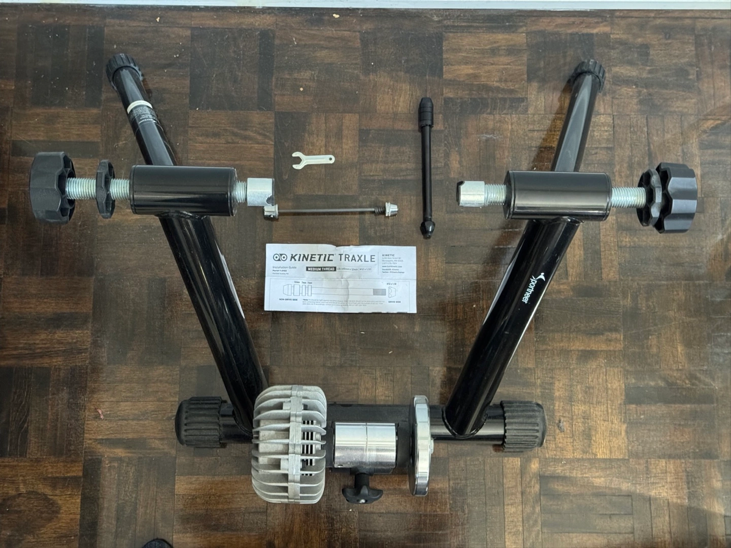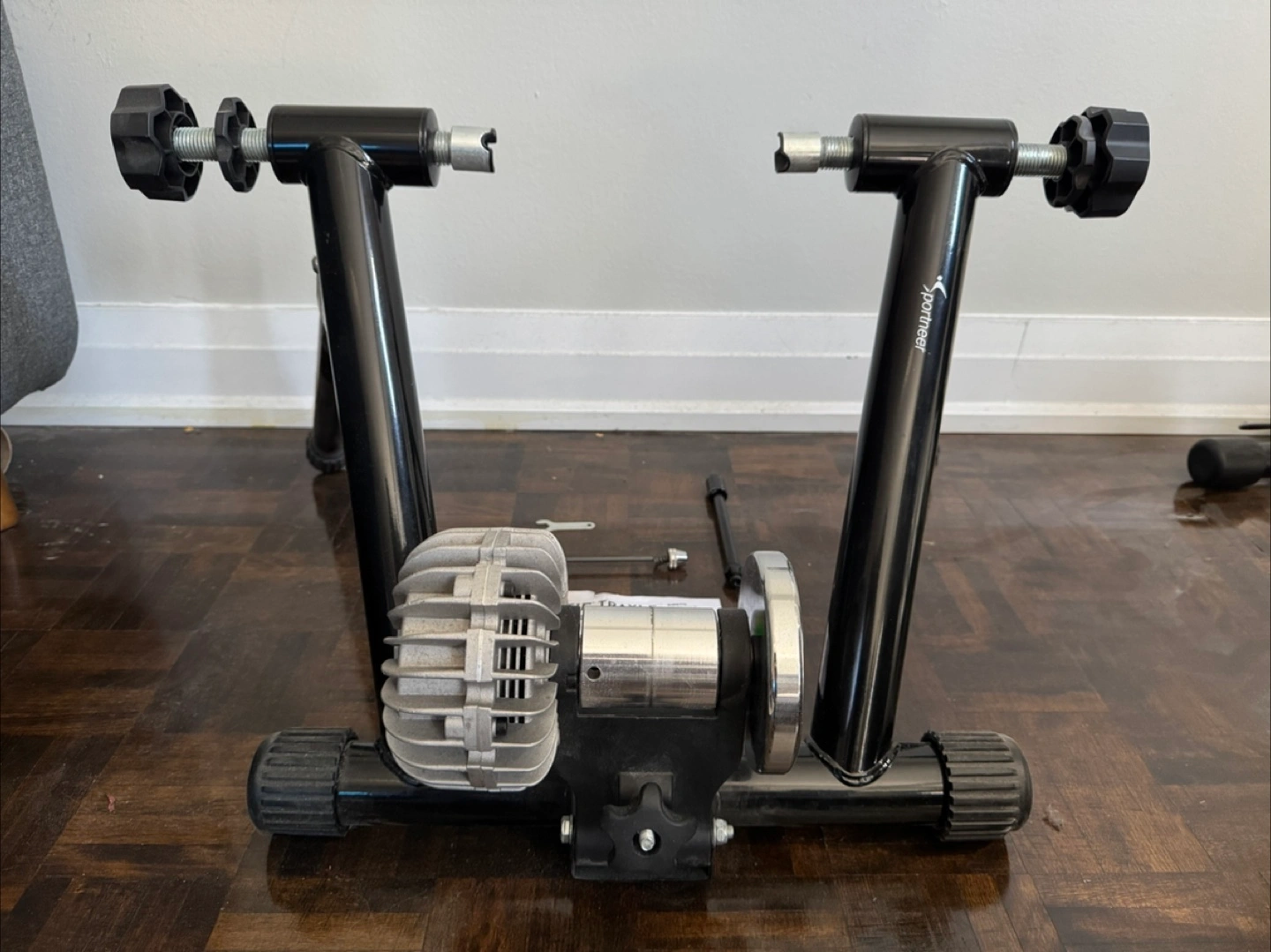 Selling a Sportneer bike trainer stand. It's in great shape and ready for you to get your indoor cycling on! Includes all the components you see in the pictures, including a traxle for use on a through axle bike.