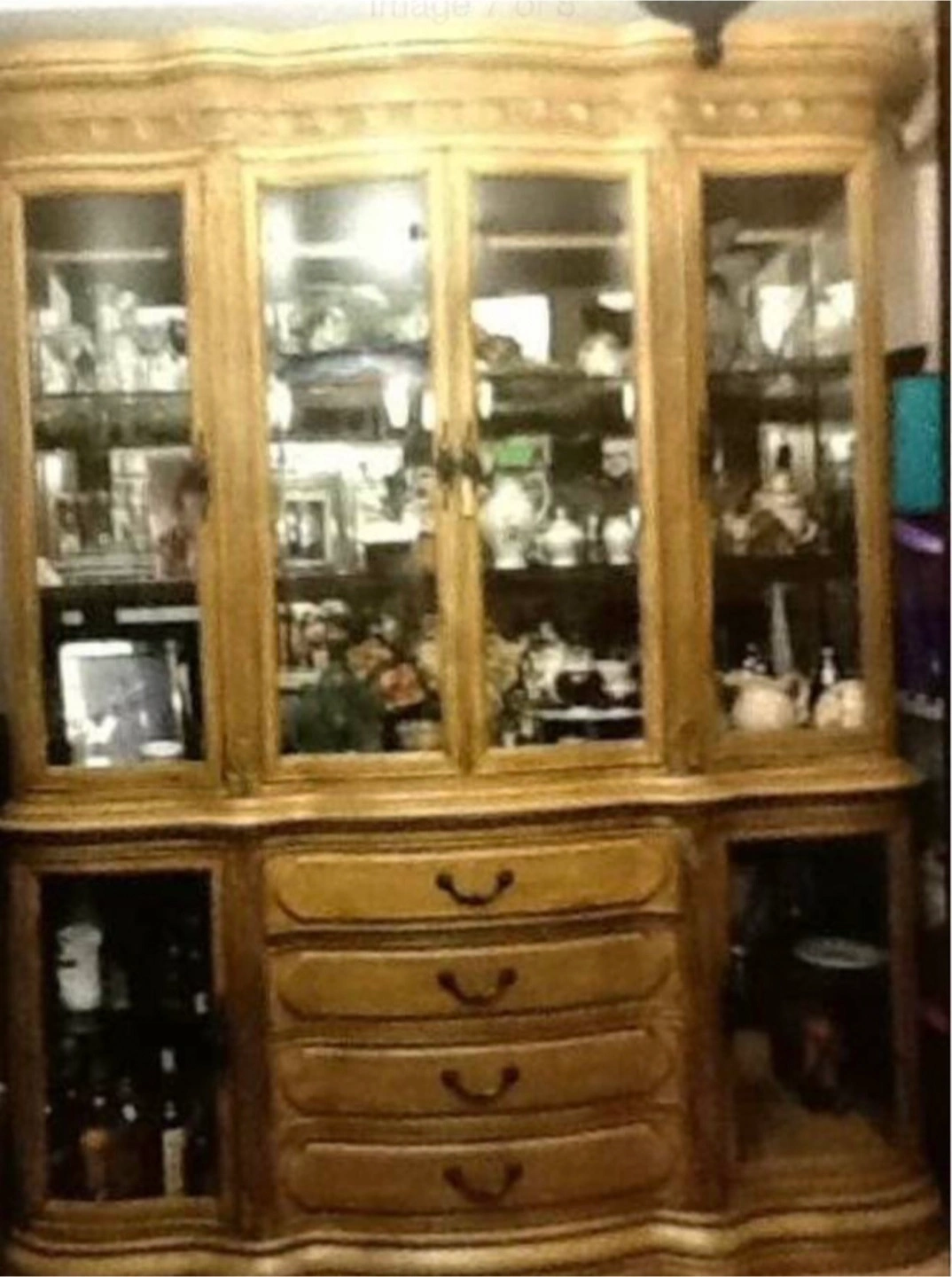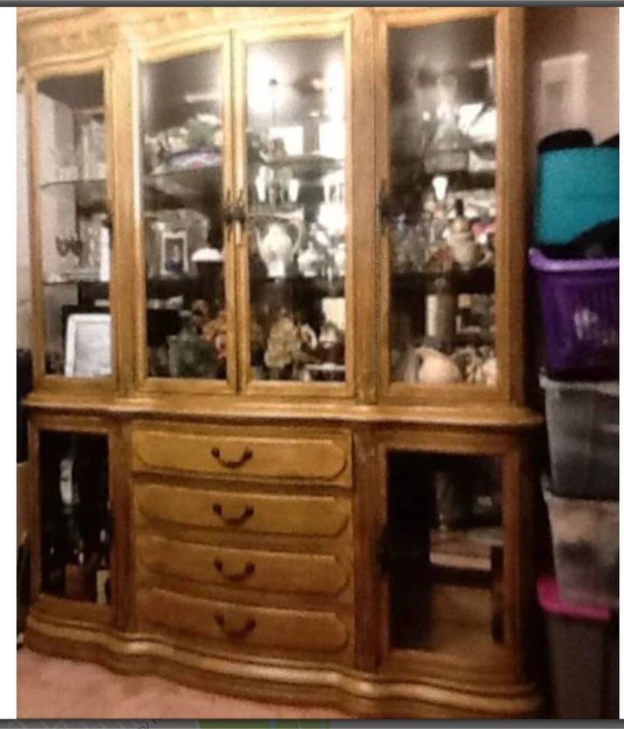 I'm selling a dining table set that includes a hutch. It's a beautiful set that would look great in any dining room. The table is large and can seat many people, and the hutch provides plenty of storage space. The set is in good condition and ready for a new home