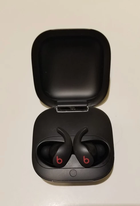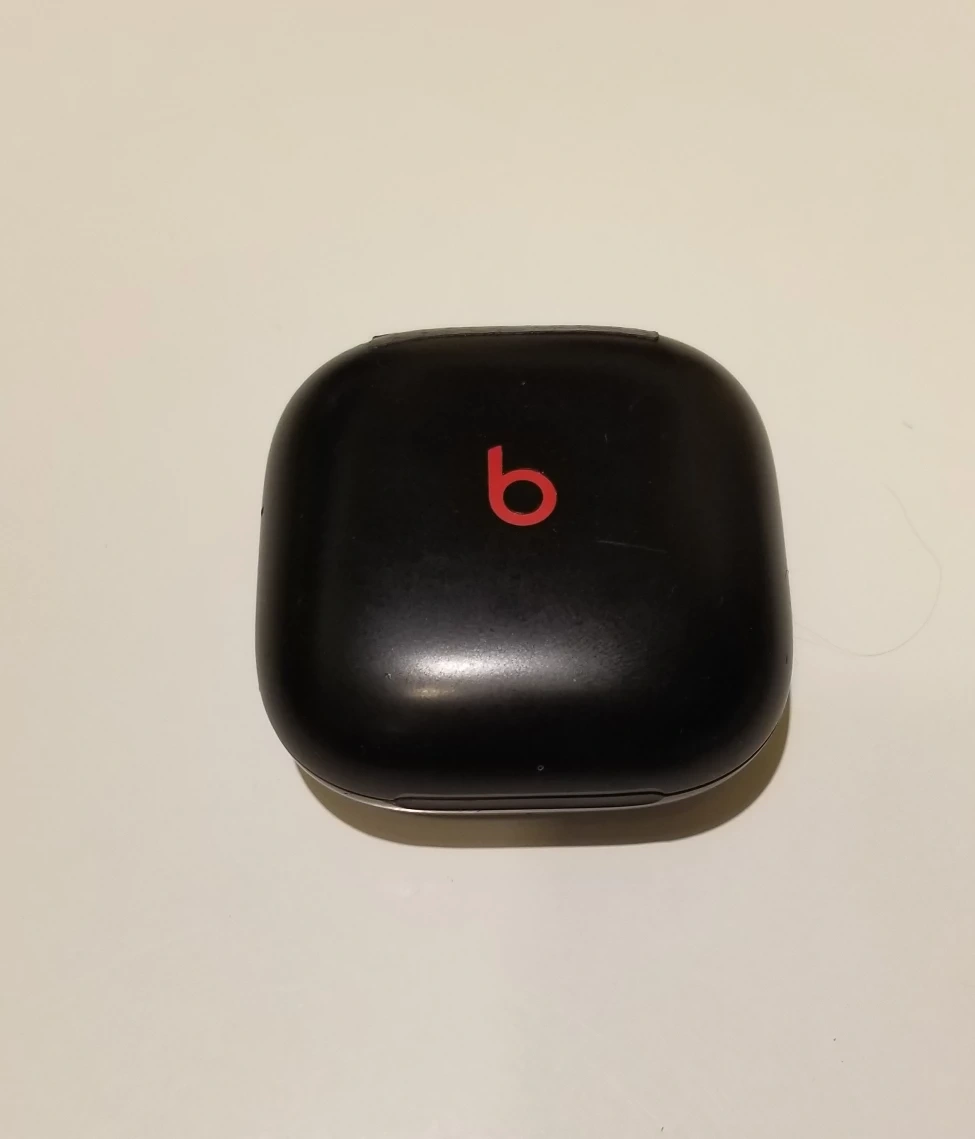 Selling a pair of Beats Fit Pro in black. They're in used condition, with some wear and tear on the charging case hinge as shown in the pictures. Still fully functional and sound great!