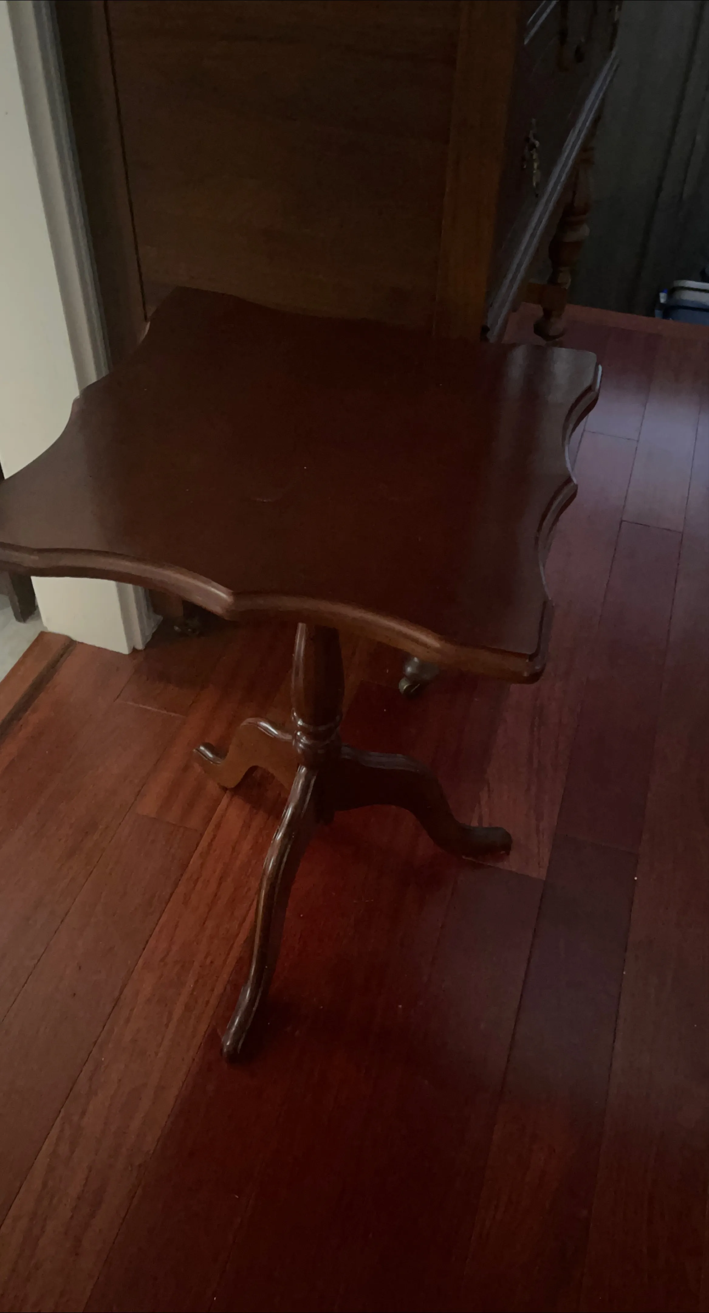 Selling a lovely accent table from The Bombay Company. It's a beautiful dark wood colour and in great shape. Perfect for a small space or as a decorative piece!