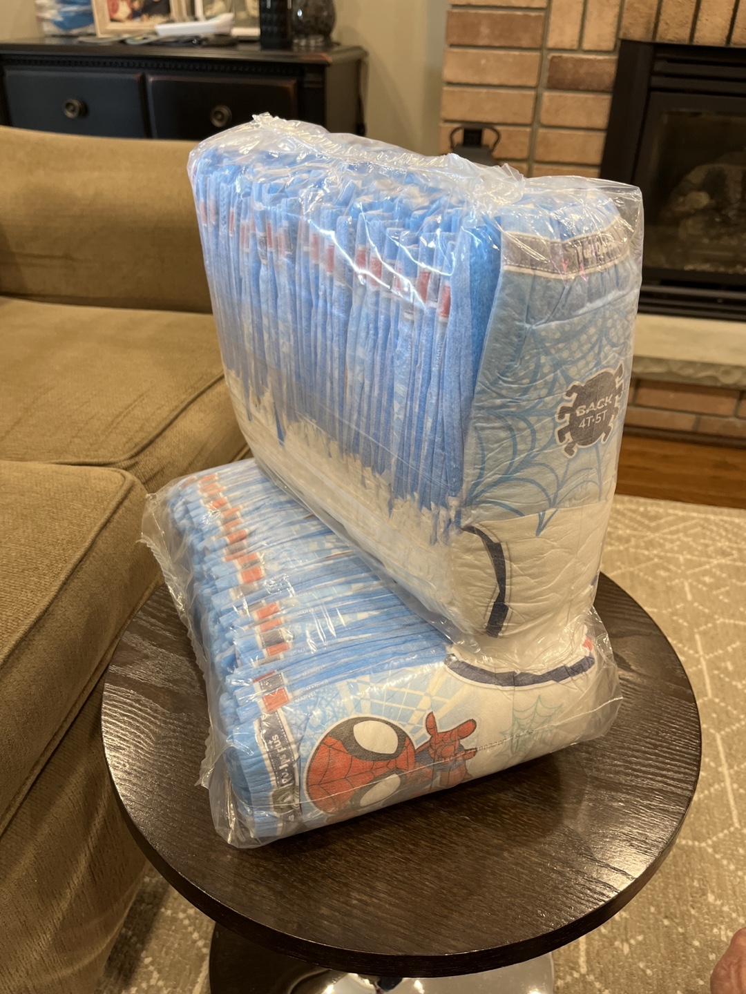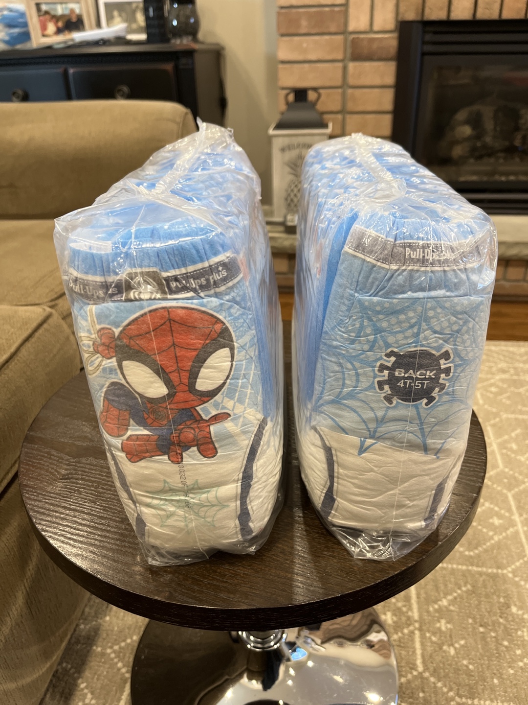 Selling two unopened packs of Pull-Ups Plus diapers featuring Spiderman! They are size 4T-5T, perfect for toddlers. Keep your little one comfortable with these fun and reliable training pants