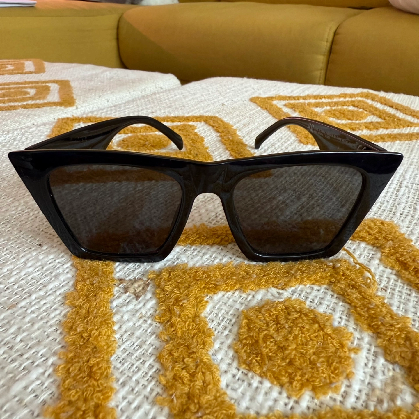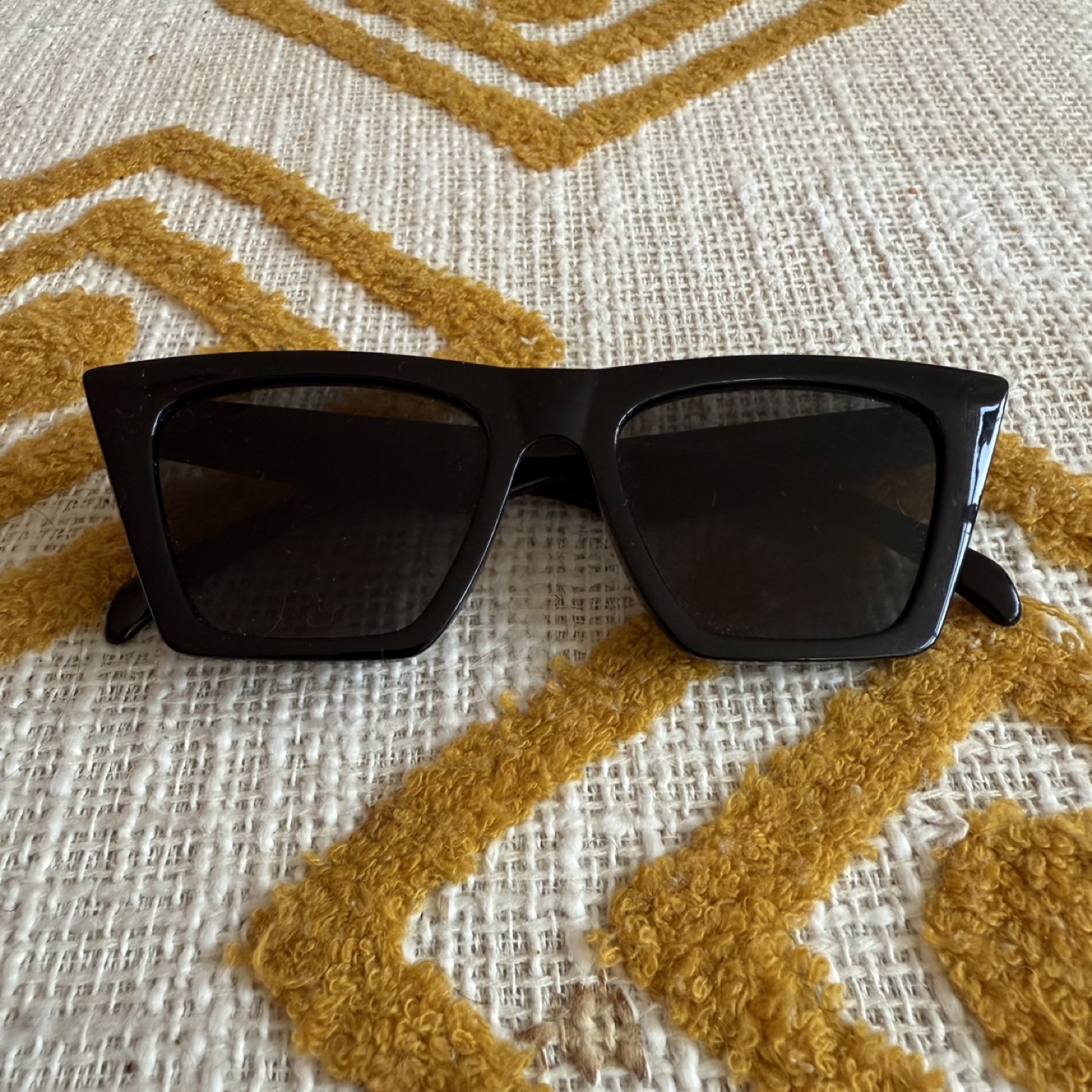 Selling a pair of black sunglasses with fun shape. They are in great condition and ready for a new owner!